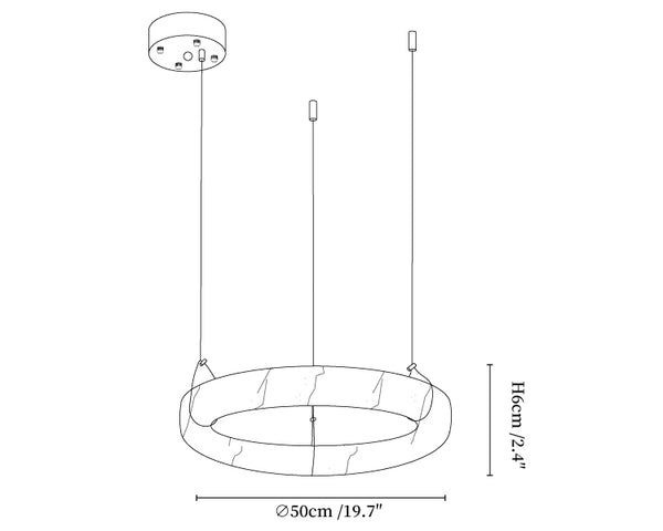 59″ Adjustable hanging height cable, which can be lengthened as required.