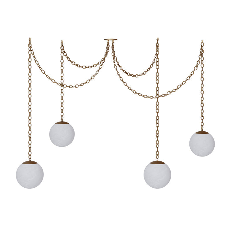 Elevate your space with the Alabaster Swag Pendant Lamp, featuring a refined brass body paired with a smooth alabaster lampshade. This elegant combination offers warm, diffused lighting that enhances any room with subtle sophistication and timeless style. Ideal for creating a graceful ambiance in living areas or dining rooms.
