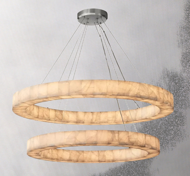 Alabaster Rival 2-Tier Round Chandelier 60" Satin Nickel