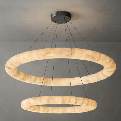 Rivage Alabaster Two-Tiered Round Chandelier 61"