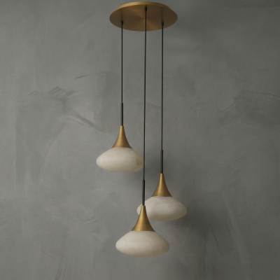 Conical Alabaster Brass Pendant Lamp