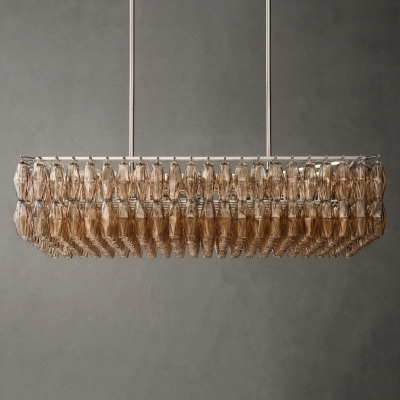 Poliedra Clear Glass Tiered Rectangular Chandelier 54''