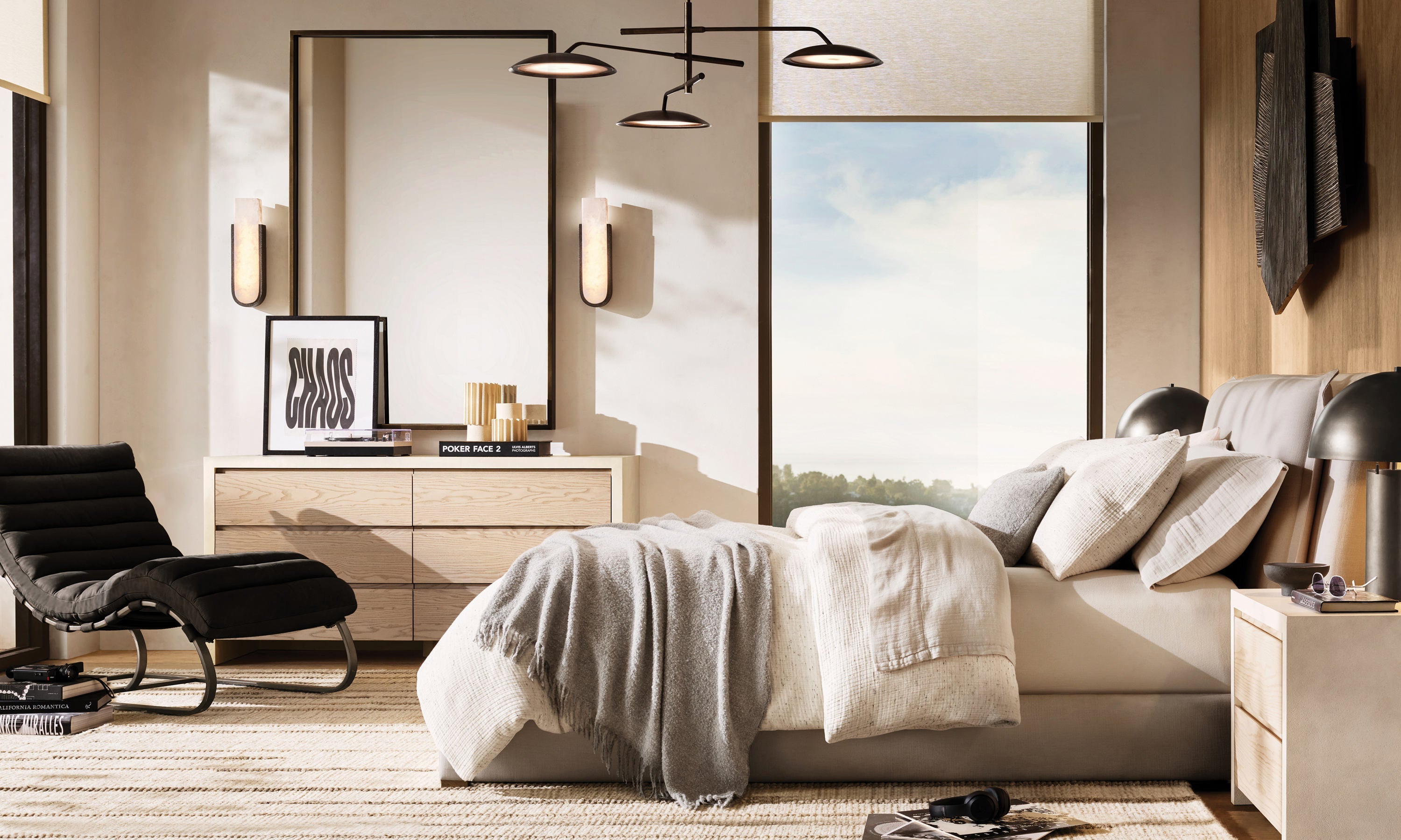 - Alabaster shade provides soft lighting