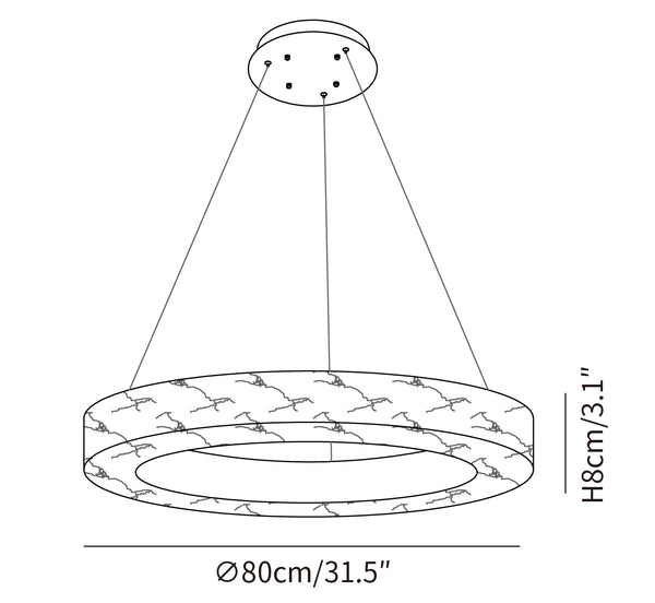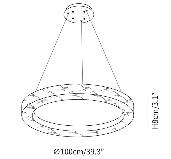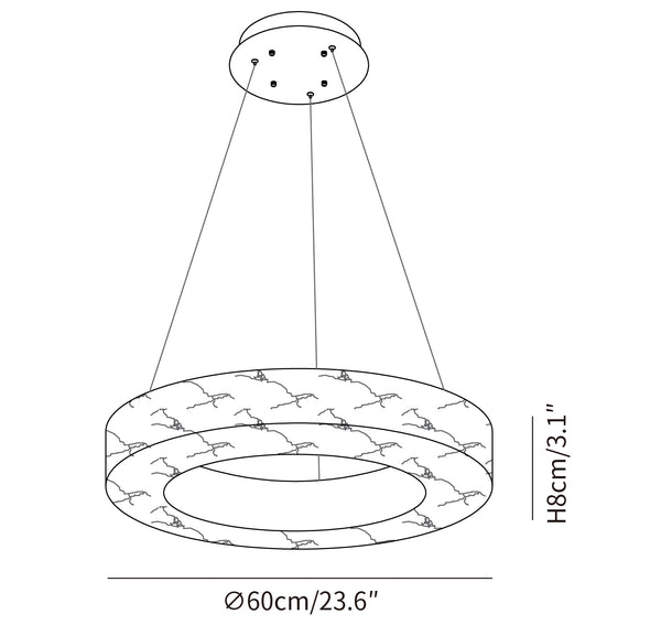 59″ Adjustable hanging height cable. Can be extended upon request.