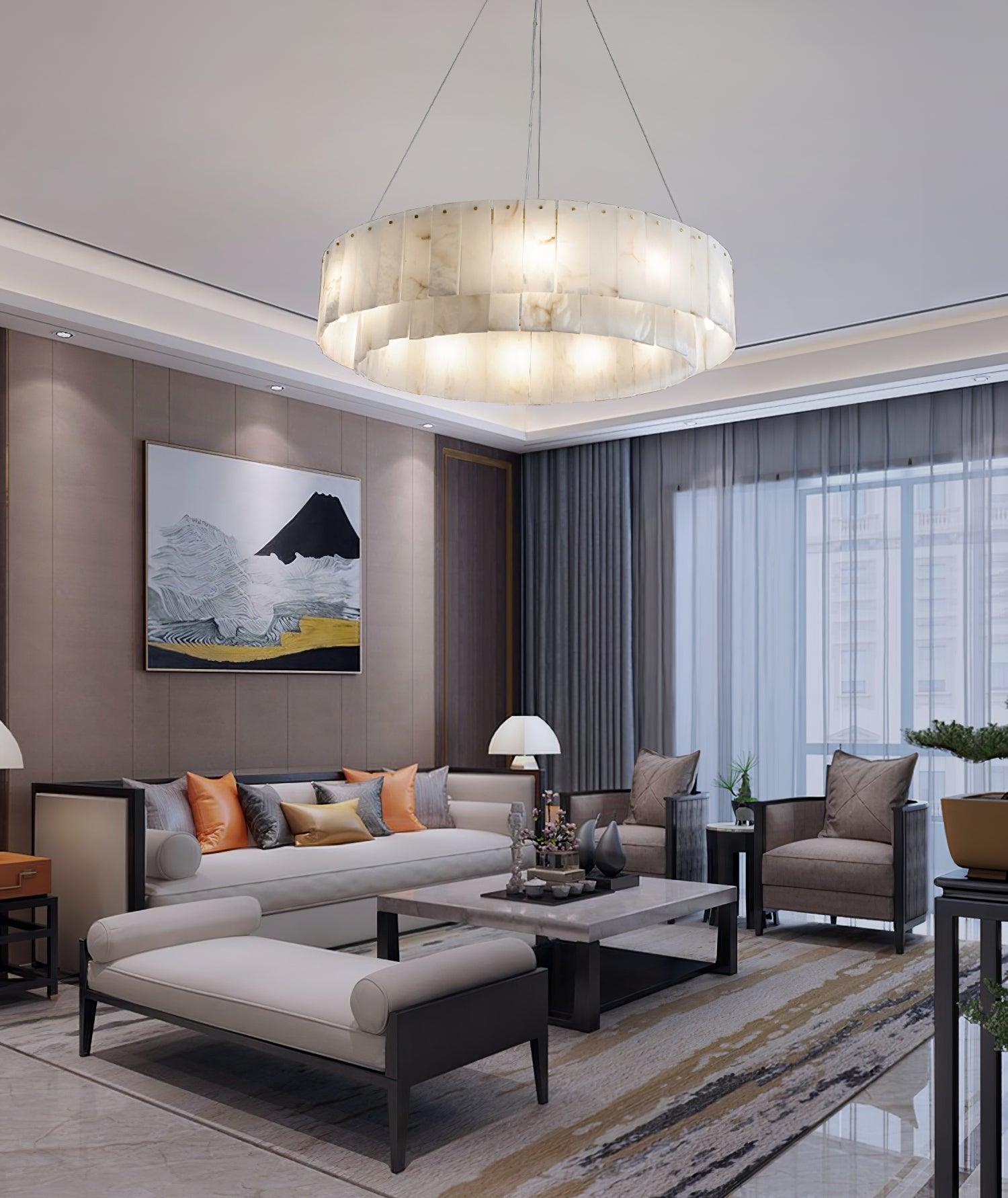 Windham Alabaster Tile Round Chandelier (30"-42")