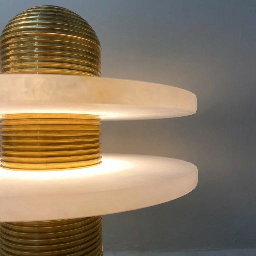 The Comet table lamp features a solid alabaster body that softly glows when lit, serving as both an inviting light source and a sculptural decorative object. The natural stone variation of the alabaster ensures each piece is one of a kind, with a quietly luxurious character that feels warm and refined.