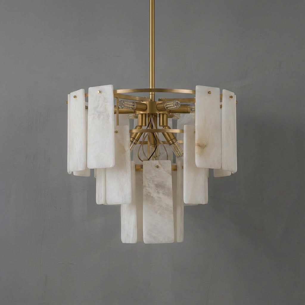 Alabaster Flake Brass Multi-Layer Chandelier Lamp