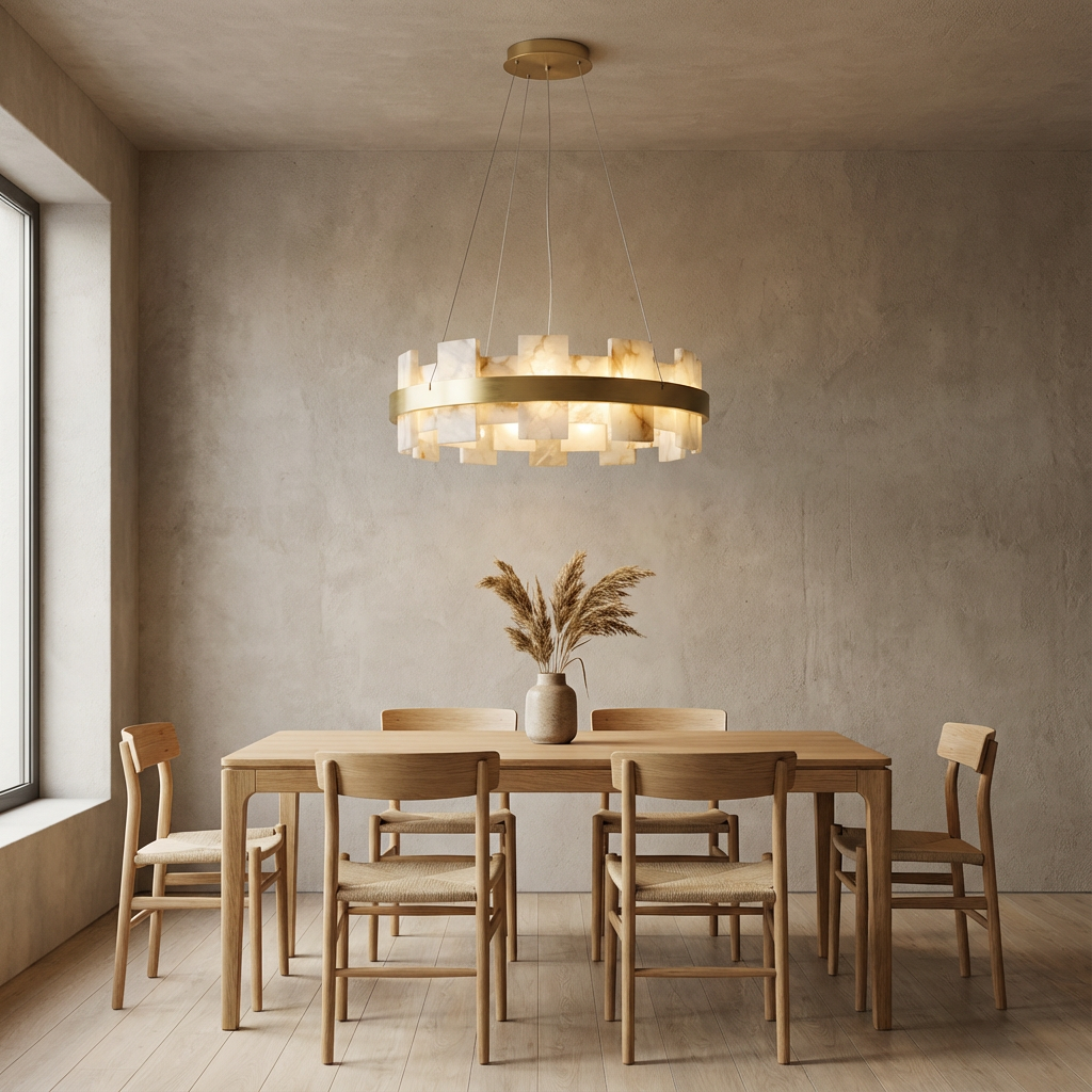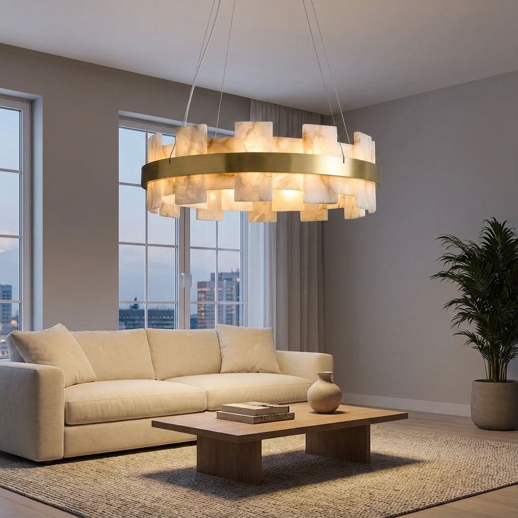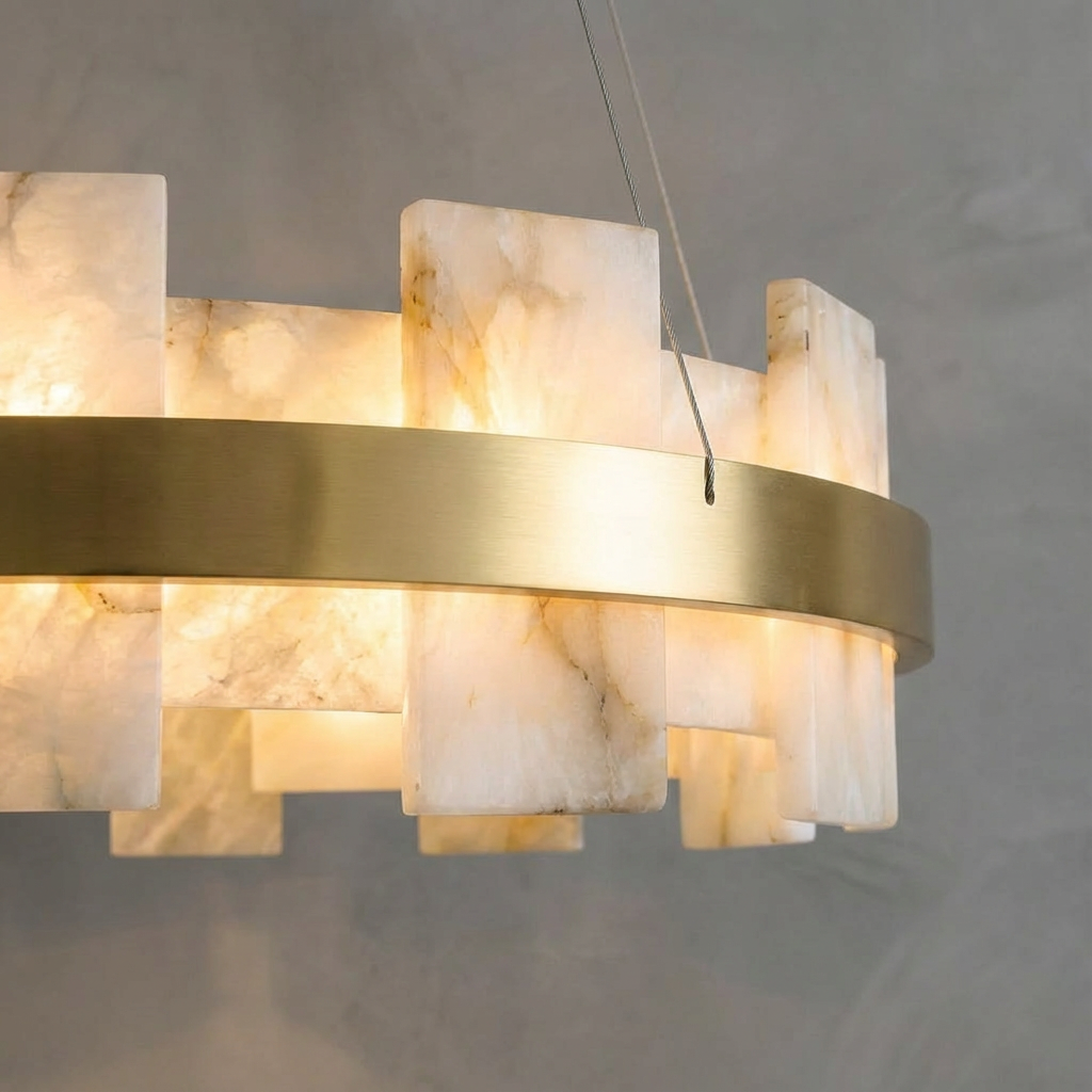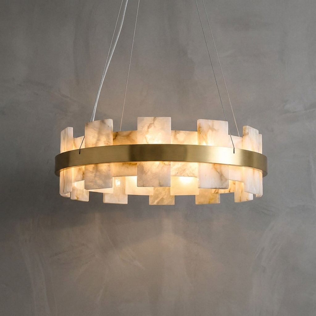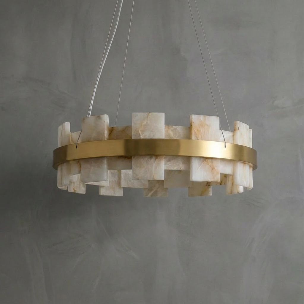 Crafted from natural alabaster, the Alabaster Flakes Round/Oval Chandelier casts a warm, evenly diffused glow that enhances contemporary interiors with subtle sophistication. Each alabaster element contributes to a gentle, ambient illumination, creating an inviting atmosphere. With its clean geometry and restrained detailing, this chandelier lends a refined, architectural presence to any space. The soft, sculptural form is ideal for entry halls, great rooms, and dining areas where a graceful focal point is desired overhead. Thoughtfully engineered mounting details allow the fixture to appear light and effortless once installed, emphasizing its floating, luminous character while maintaining a polished, modern look.