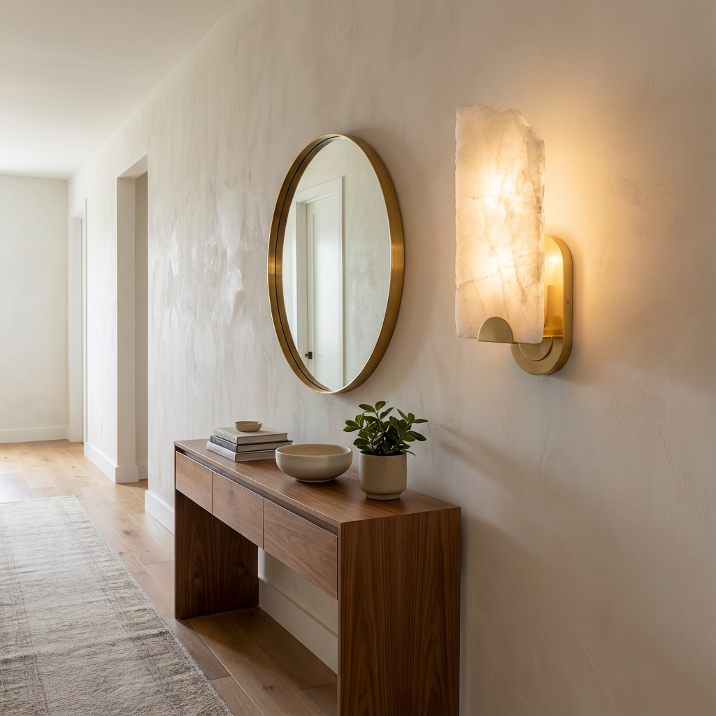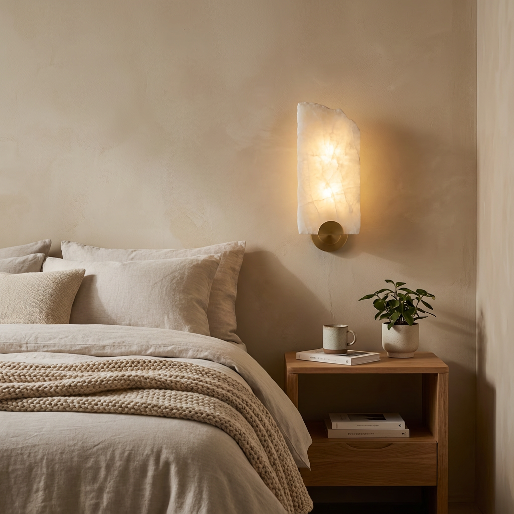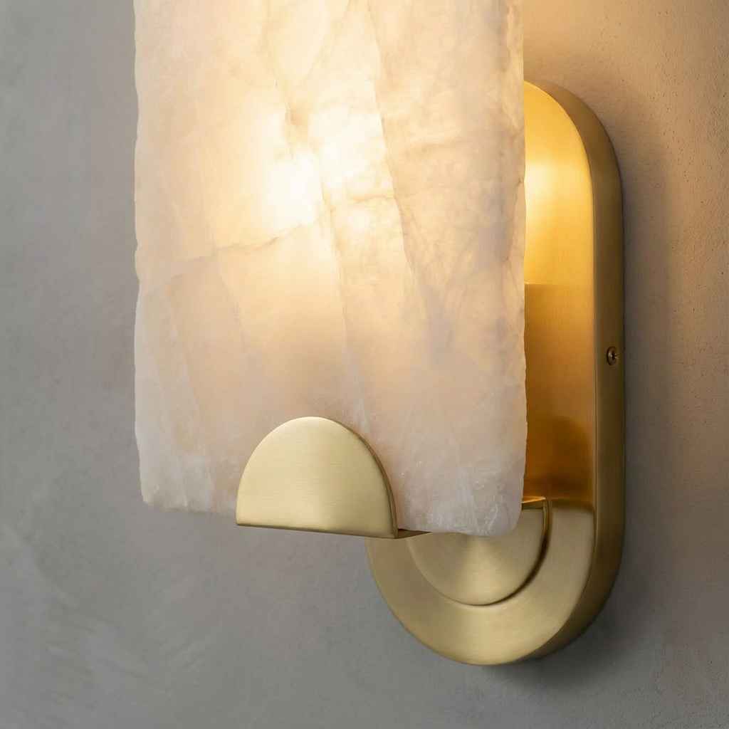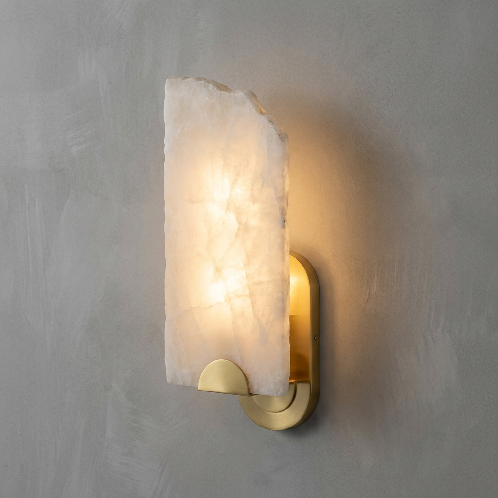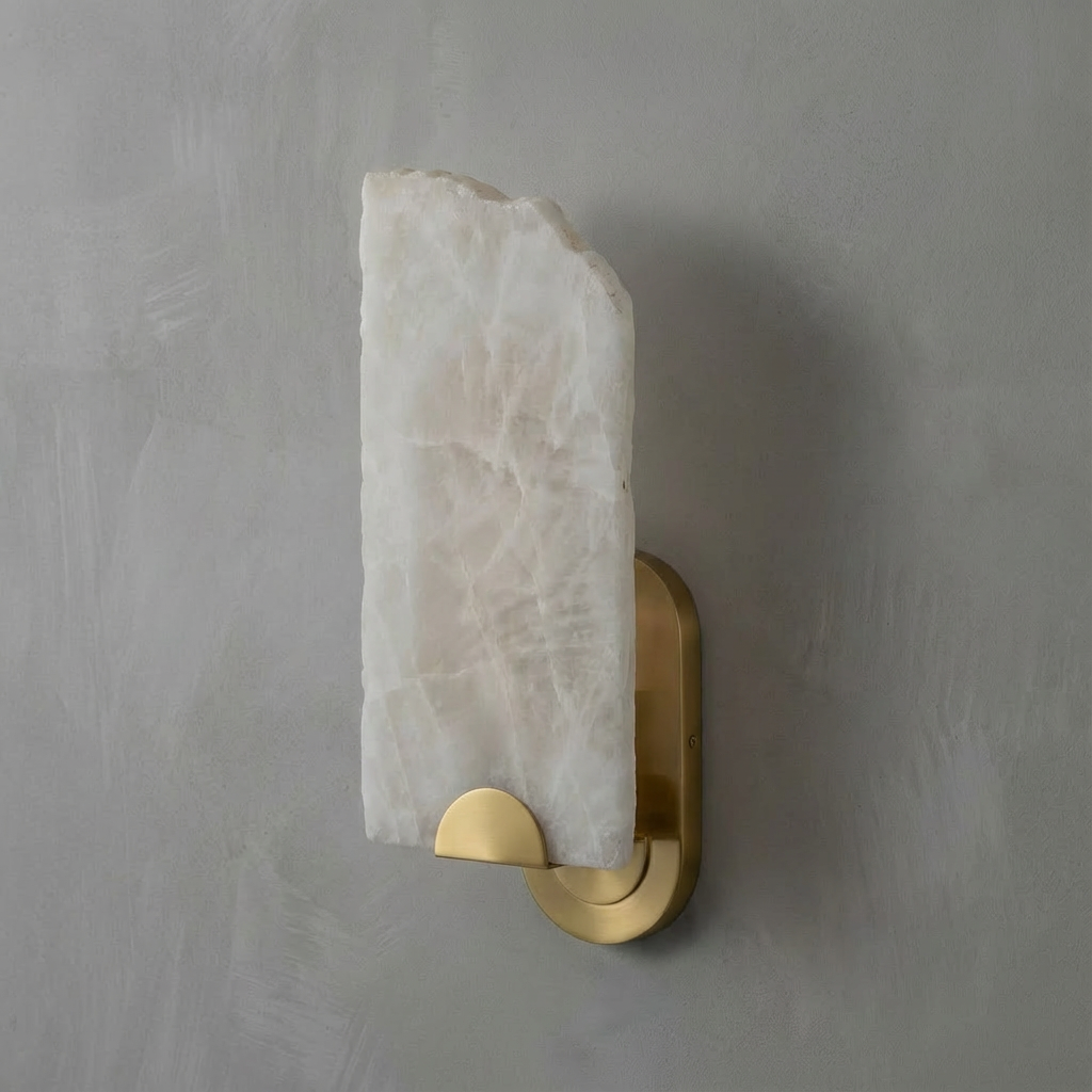 The Jonah sconce features a sculpted alabaster body with a carefully controlled projection from the wall, creating comfortable ambient light without excess glare. The natural character of the alabaster adds warmth and refinement, while its gentle glow enhances the surrounding architecture. Subtle shaping and balanced proportions give this fixture a calm, modern presence that feels at home in bedrooms, hallways, or living rooms. Installed singly, it provides a serene focal point; arranged in series, it builds a consistent visual rhythm and a measured cadence of light that beautifully complements contemporary interiors.
