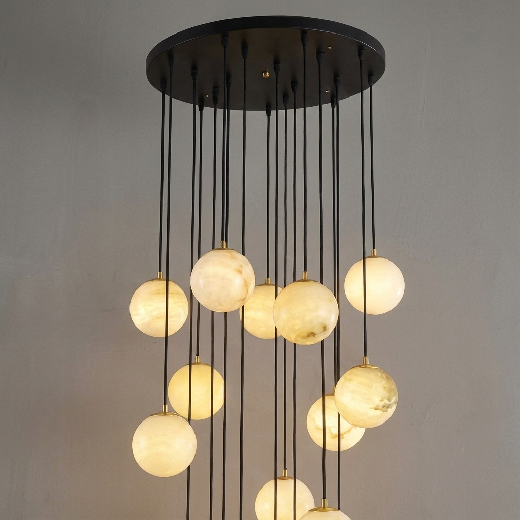 - Dimensions: Marble lampshade diameter: 4.7 in; 7 Lights: diameter 11.8 in, height 78.7 in; 9 Lights: diameter 13.7 in; 16 Lights: diameter 19.6 in, height 7 in; 18 Lights: diameter 23.7 in; 24 Lights: diameter 31.5 in, height 107 in; 30 Lights: height 128 in; 45 Lights: diameter 35 in, height 185 in