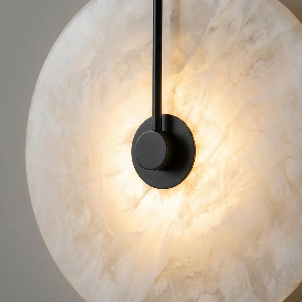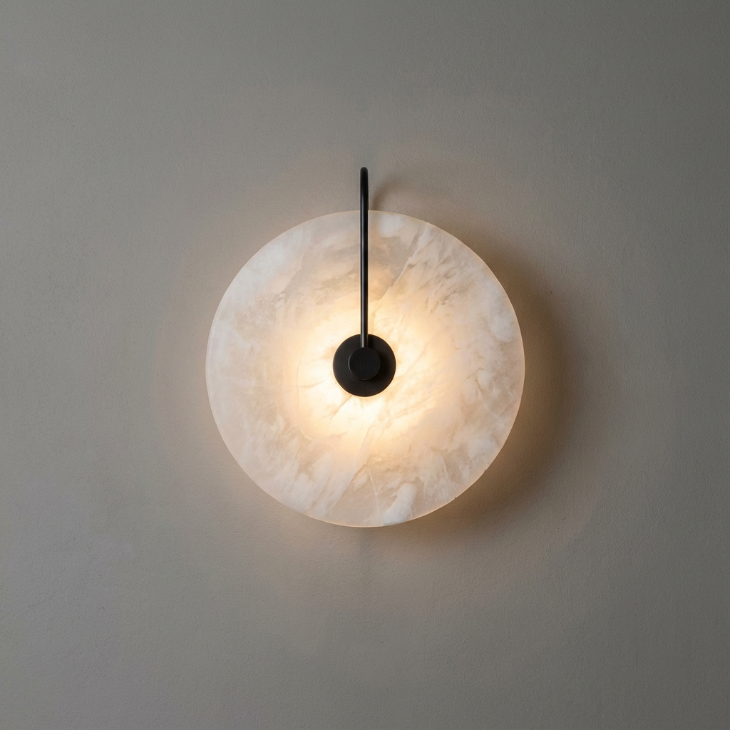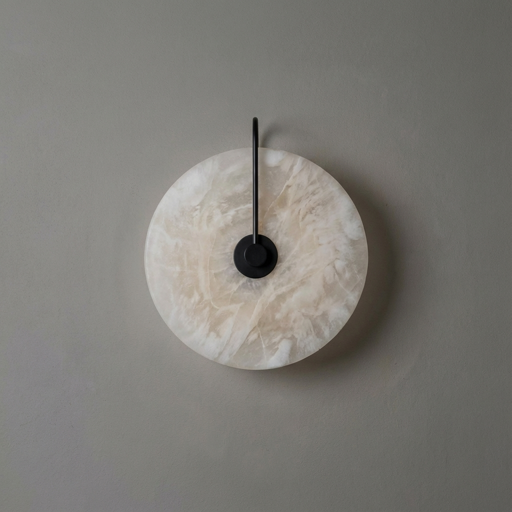 A rounded alabaster sconce shaped with restrained curvature, Alabaster Round Sconce 10 brings a refined softness to the wall. The natural alabaster lends a subtle richness and texture, even when unlit. When illuminated, it emits a quiet, ambient glow that gently washes over surfaces, softening architectural corners and adding depth to transitional spaces. Elegant and understated, it's a modern accent that feels warm, inviting, and effortlessly elevated.