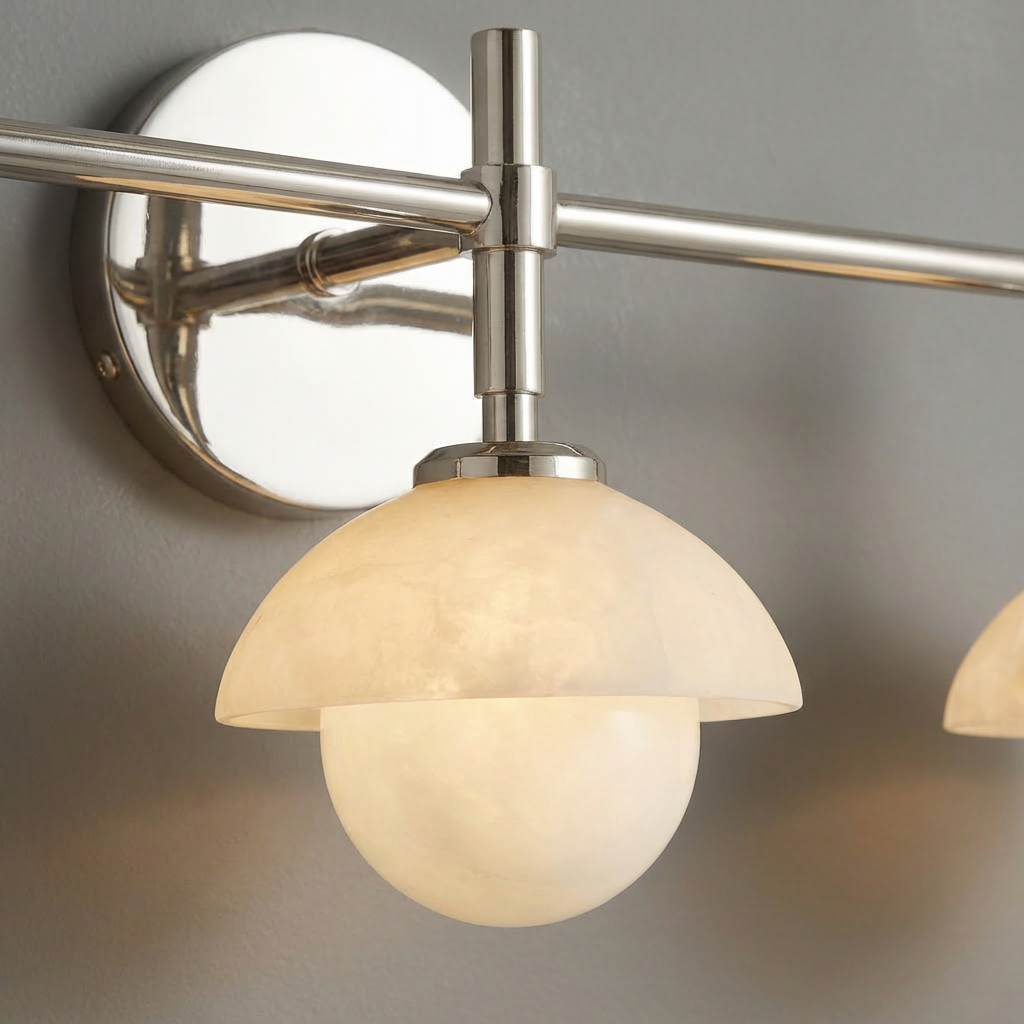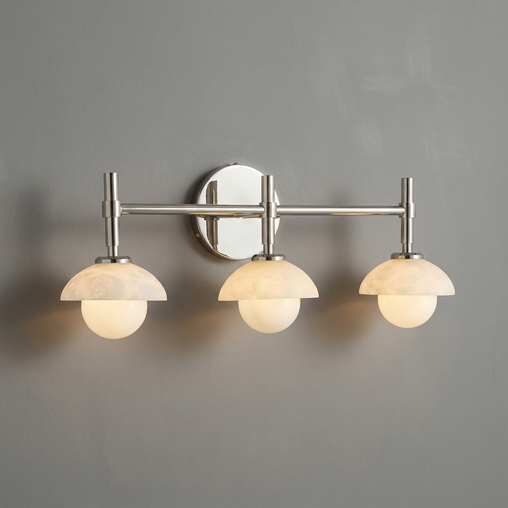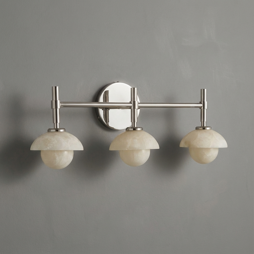 Three linear alabaster diffusers create a refined composition, each one glowing with its own subtle character while forming a unified, sculptural sconce. The natural beauty of alabaster brings warmth and depth to the light, casting a soft, inviting ambiance. Perfect for bathroom mirrors, vanities, or elongated wall installations, this triple sconce offers a modern, elegant presence that feels both distinctive and cohesive. Its streamlined form and luminous alabaster make it a sophisticated choice for premium interiors.
