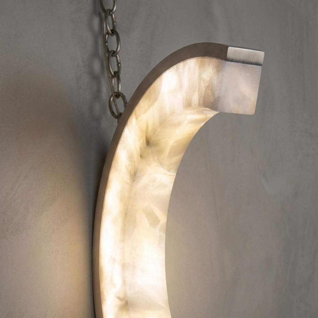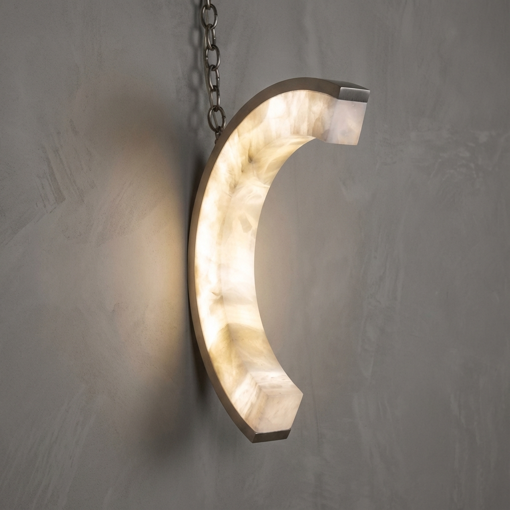 Thoughtfully shaped for bedside comfort, this alabaster wall sconce casts a soft, downward glow ideal for late-night reading and early-morning calm. The natural beauty of alabaster brings a warm, mineral-rich radiance that settles gently into the room, creating an inviting, restful atmosphere. A small bronze mount offers a refined, understated accent that complements the stone's subtle luminosity. Elegant yet versatile, this illuminating sconce is well suited to both contemporary and transitional spaces, enhancing the bedside with quiet sophistication.