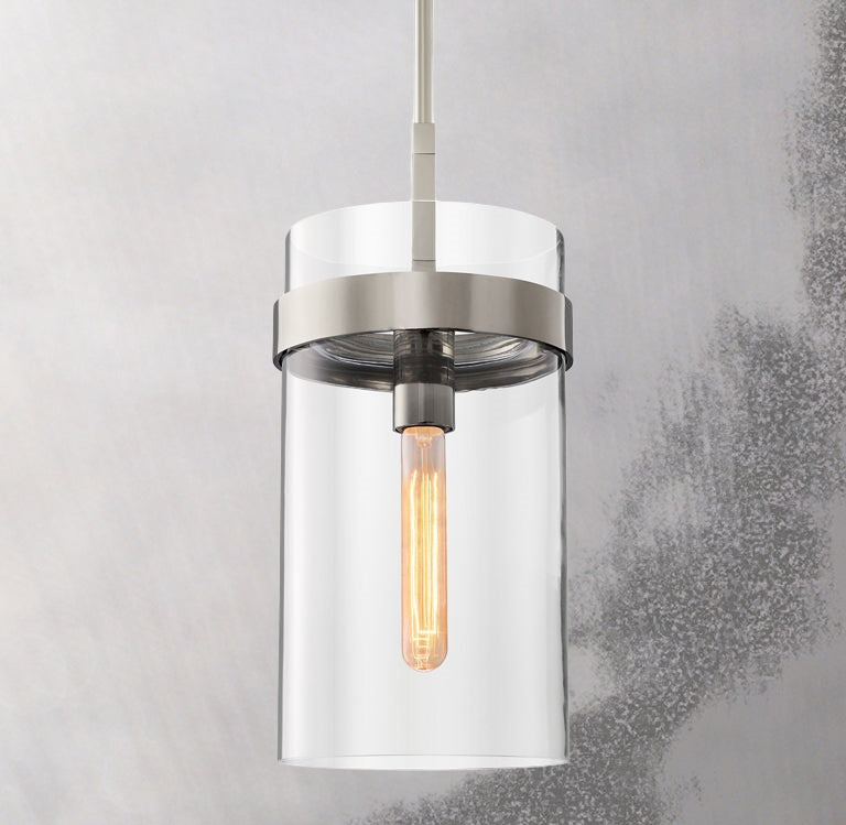 The Anello Pendant 8" brings sculptural elegance to any interior with its signature Anello design. A solid brass ring frame supports a blown glass cylinder upright, creating a refined crown-like silhouette that feels both linear and architectural.