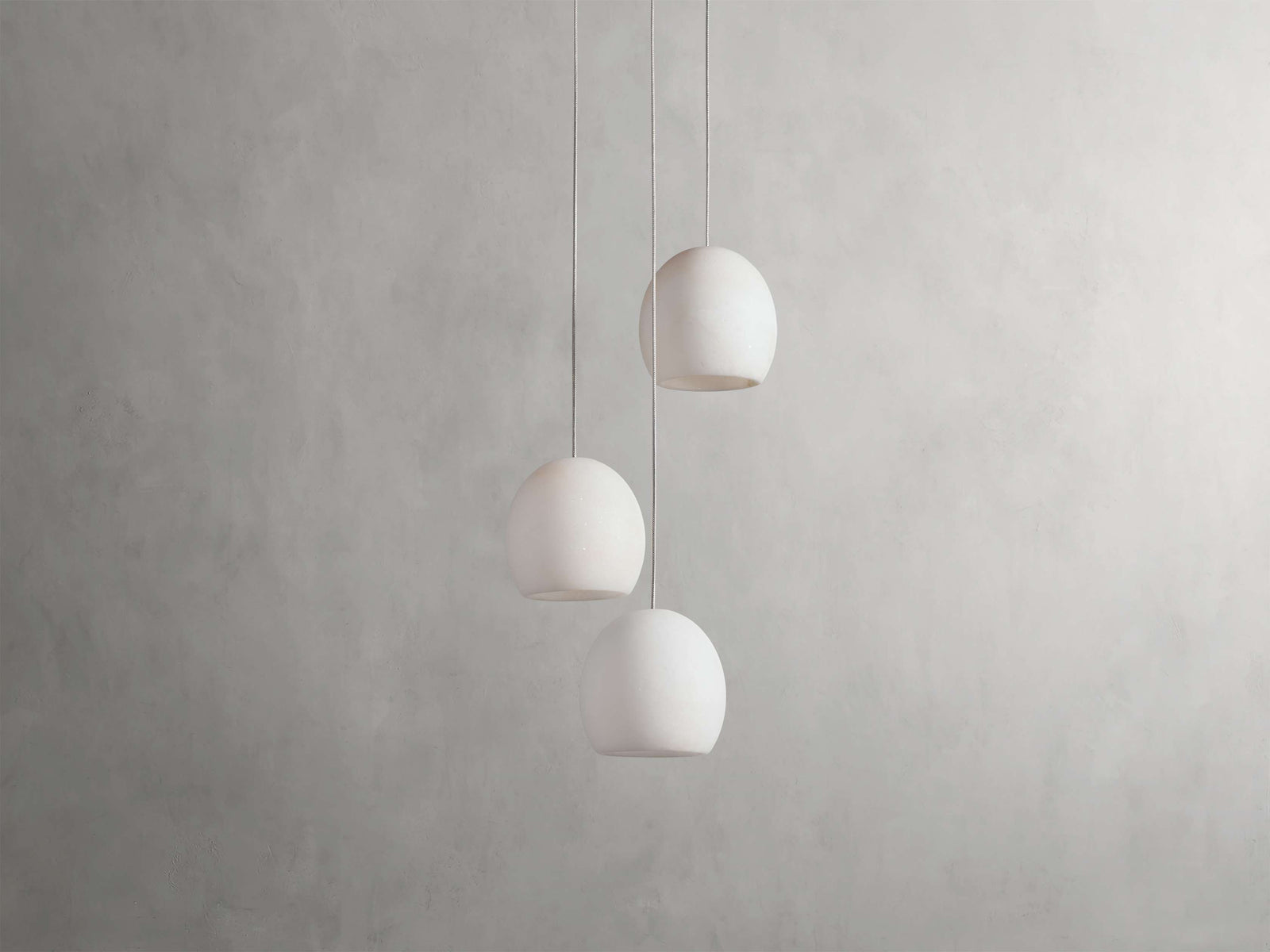 Soft and weightless, they feel like a constellation drawn in alabaster. Each globe is carved from solid stone, its surface carrying faint mineral clouds that make every piece slightly different—some warmer, some lighter, all alive with quiet variation.
