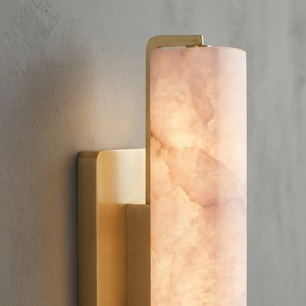 A single alabaster diffuser is set against a slim metal bracket, casting a warm, intimate glow that's perfect for focused zones. When illuminated, the natural stone reveals delicate tonal bands, adding depth and quiet drama without overpowering the surrounding architecture. Modest in scale and refined in presence, this sconce is easy to position beside beds, mirrors, or along transitional hallways. Its understated profile and luminous alabaster make it a versatile, elevated accent for modern interiors.