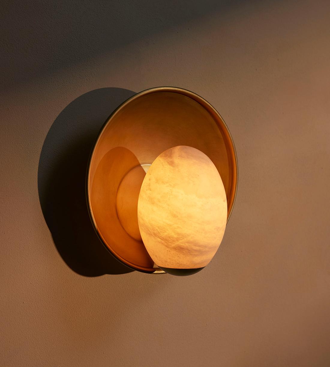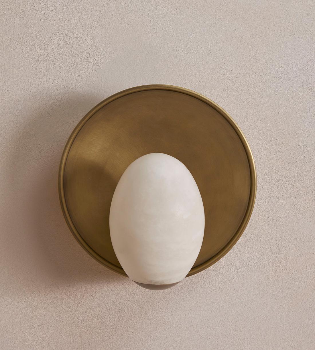 A mix of contemporary shapes and finishes makes our Avena wall light one of a kind. Inspired by Soho House Rome, an alabaster oval globe sits on a precious brass dish with a circular back. Each pattern in the alabaster stone varies, making each piece unique to the next. Place either side of the bathroom mirror for a soft lighting scheme with a modern twist.