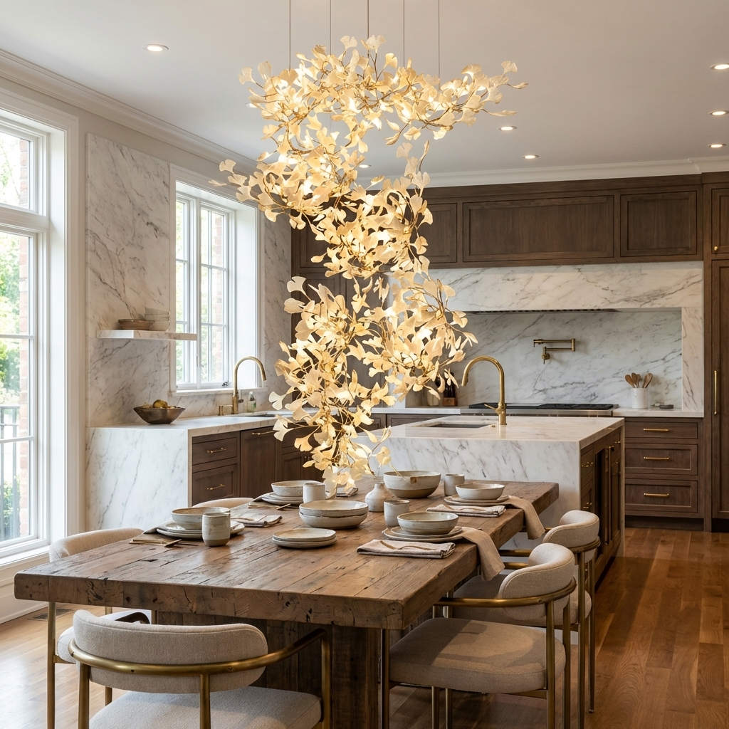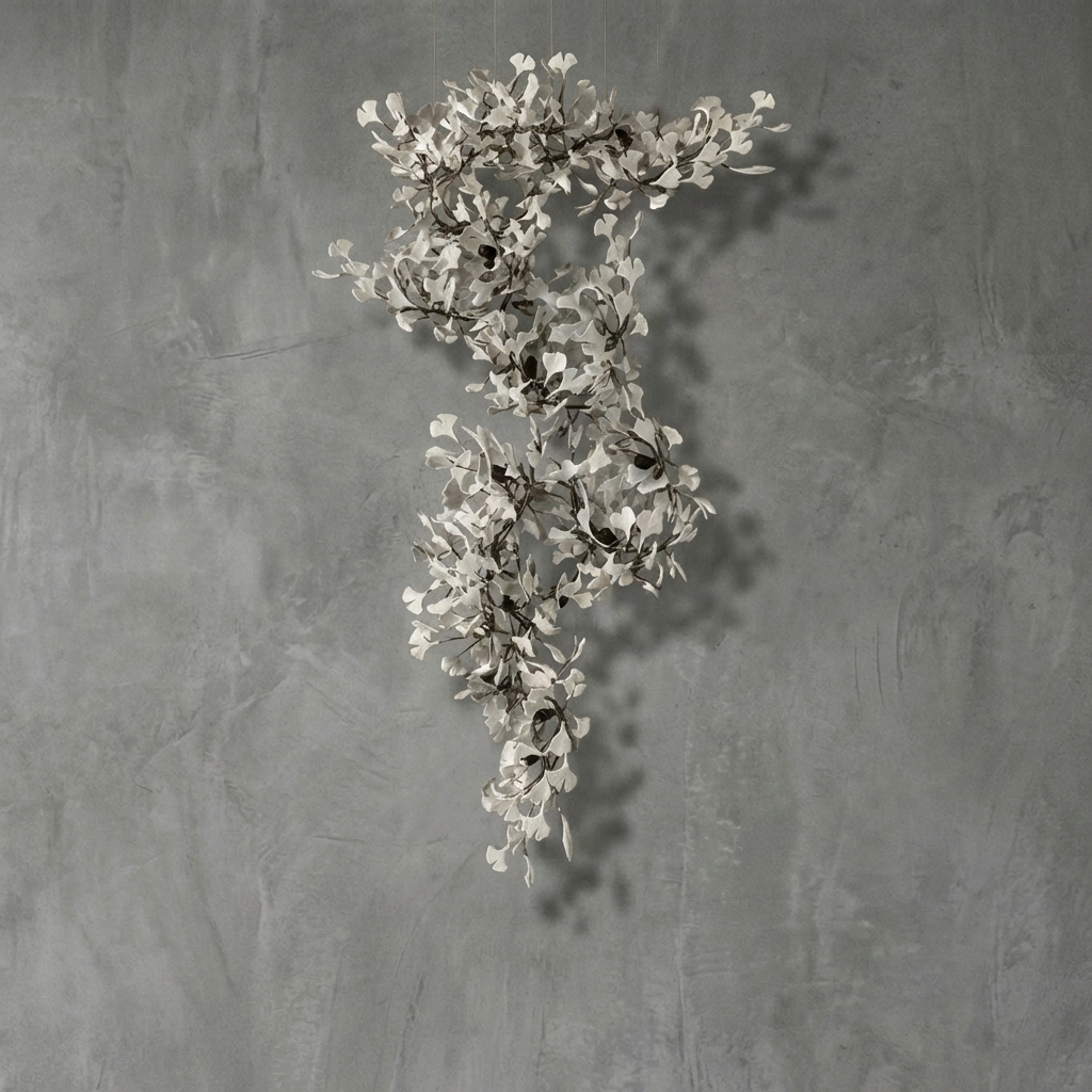 Biloba Chandelier F is ideal for stairwells, entryways, double-height living spaces, and hospitality interiors where a graceful botanical chandelier can define the room with movement, texture, and glow.