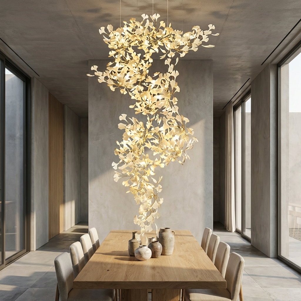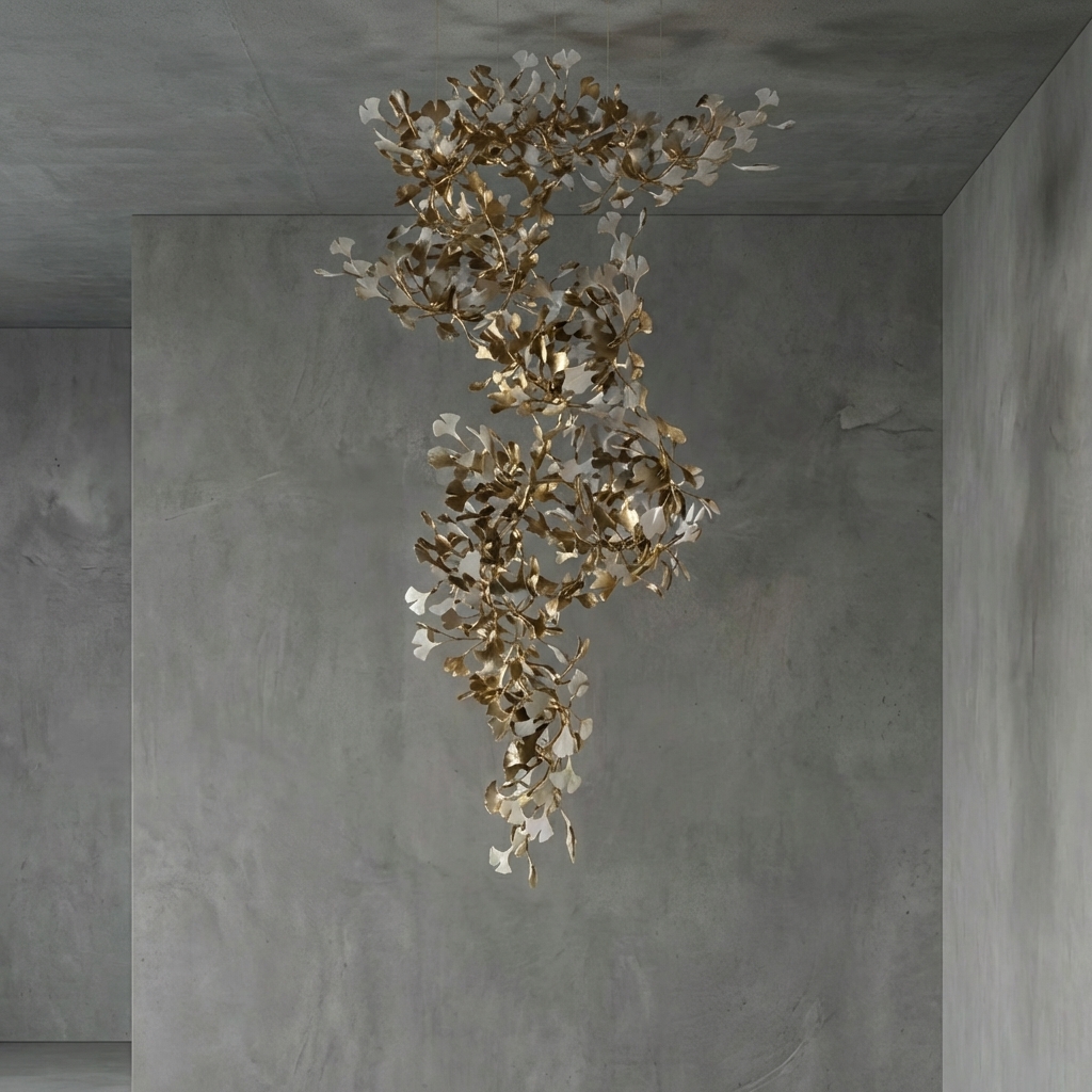 - Design Inspiration: Ginkgo leaf-inspired ceramic forms arranged in cascading organic clusters
