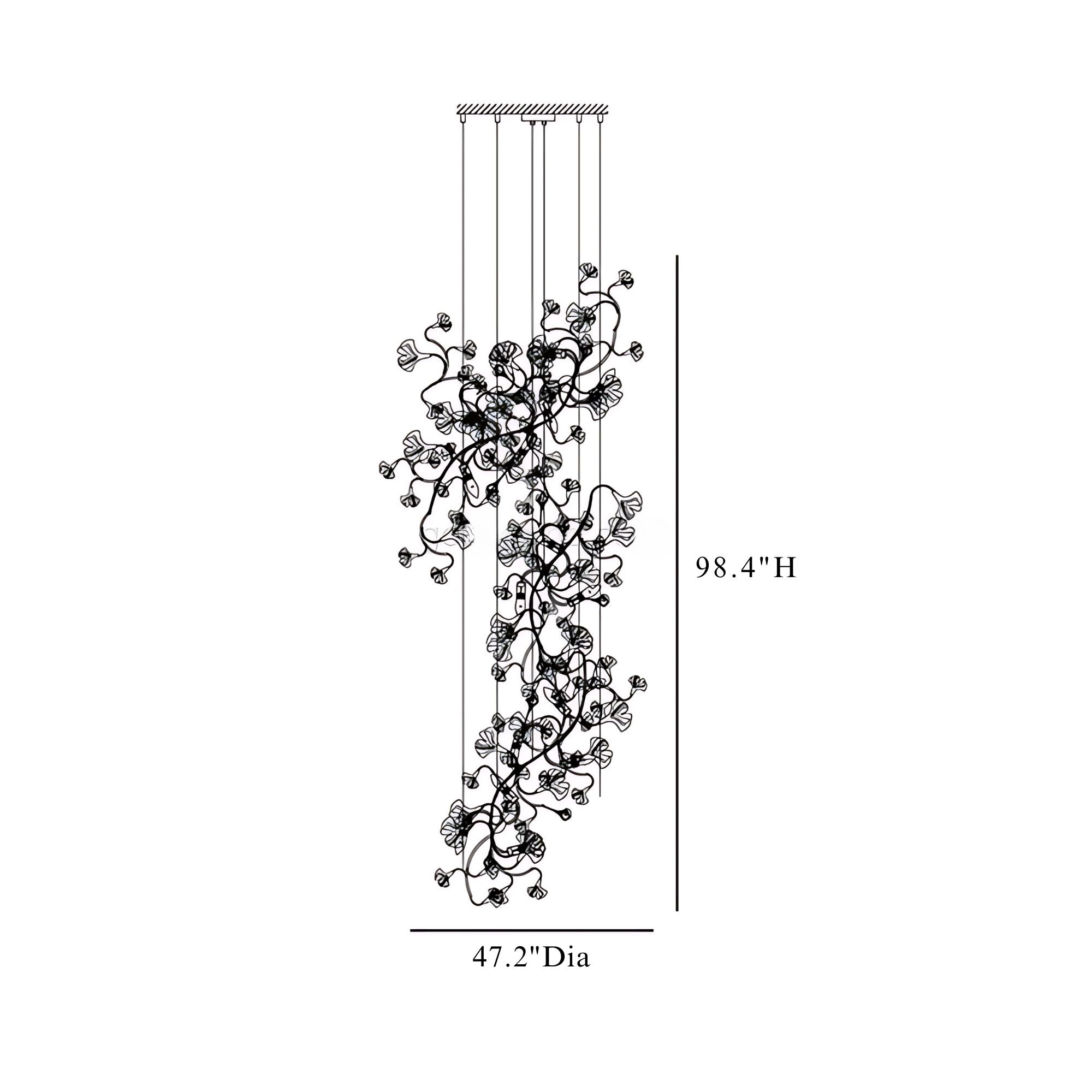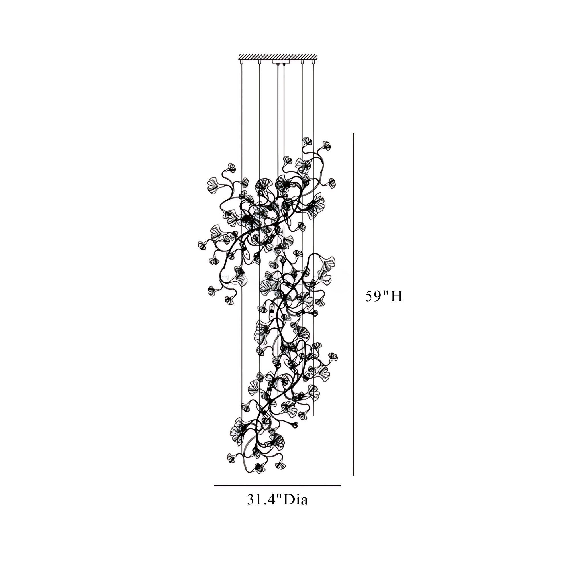 Biloba GRAND is a dramatic statement chandelier inspired by the soft, organic movement of ginkgo leaves in bloom. Delicate handcrafted ceramic leaves cascade from a sculptural metal and iron frame, creating a luminous botanical silhouette that feels both airy and luxurious. The result is a nature-led design with a refined post-modern presence, ideal for grand interiors seeking elegance, texture, and flow.