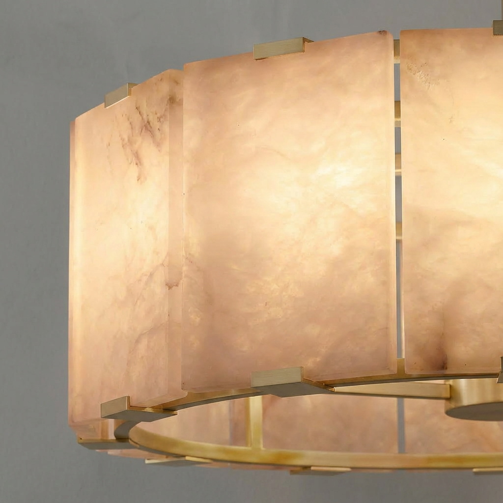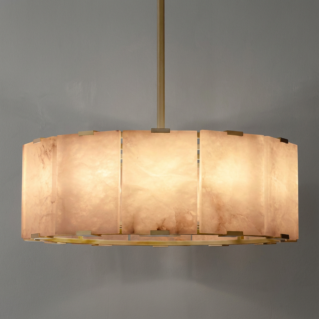 A medium-sized alabaster pendant that strikes a refined balance between presence and restraint. The natural stone creates a warm, inviting diffusion, ideal for cozy dining corners, intimate breakfast nooks, or refined kitchen islands. Its gentle curvature introduces a subtle, organic movement to the light it casts, softening the space while maintaining a clean, modern silhouette. Elevate everyday moments with the quiet elegance and timeless appeal of alabaster.