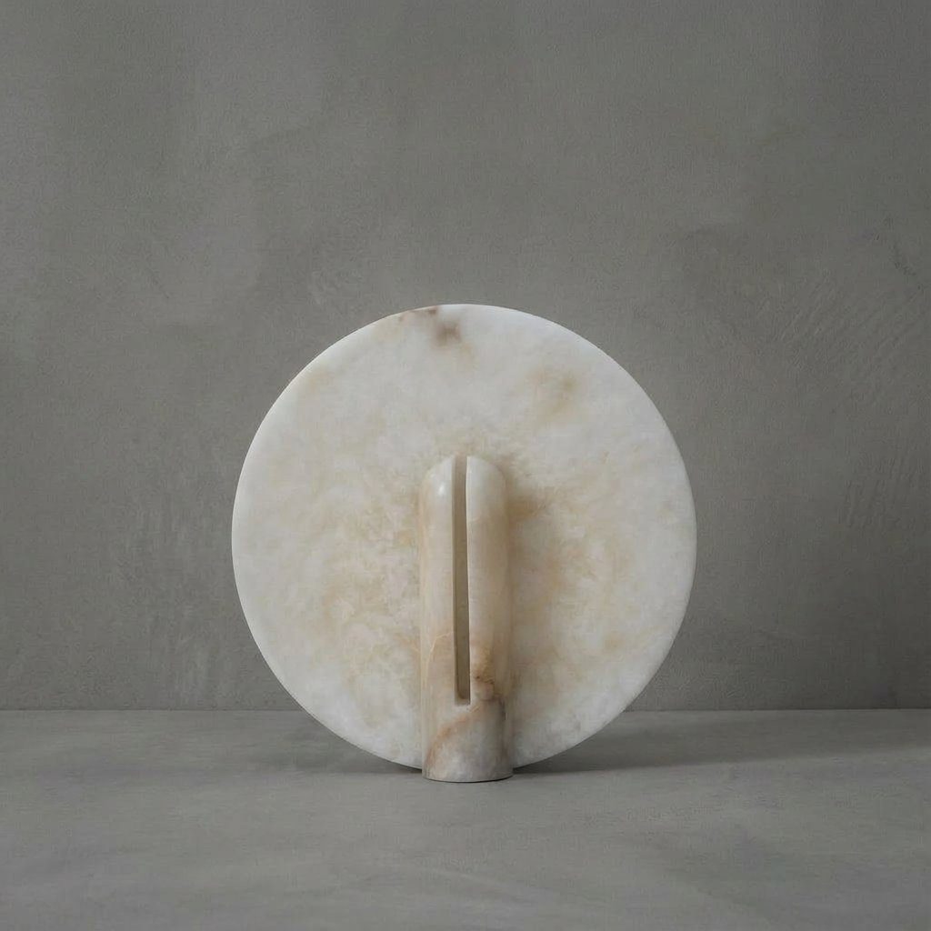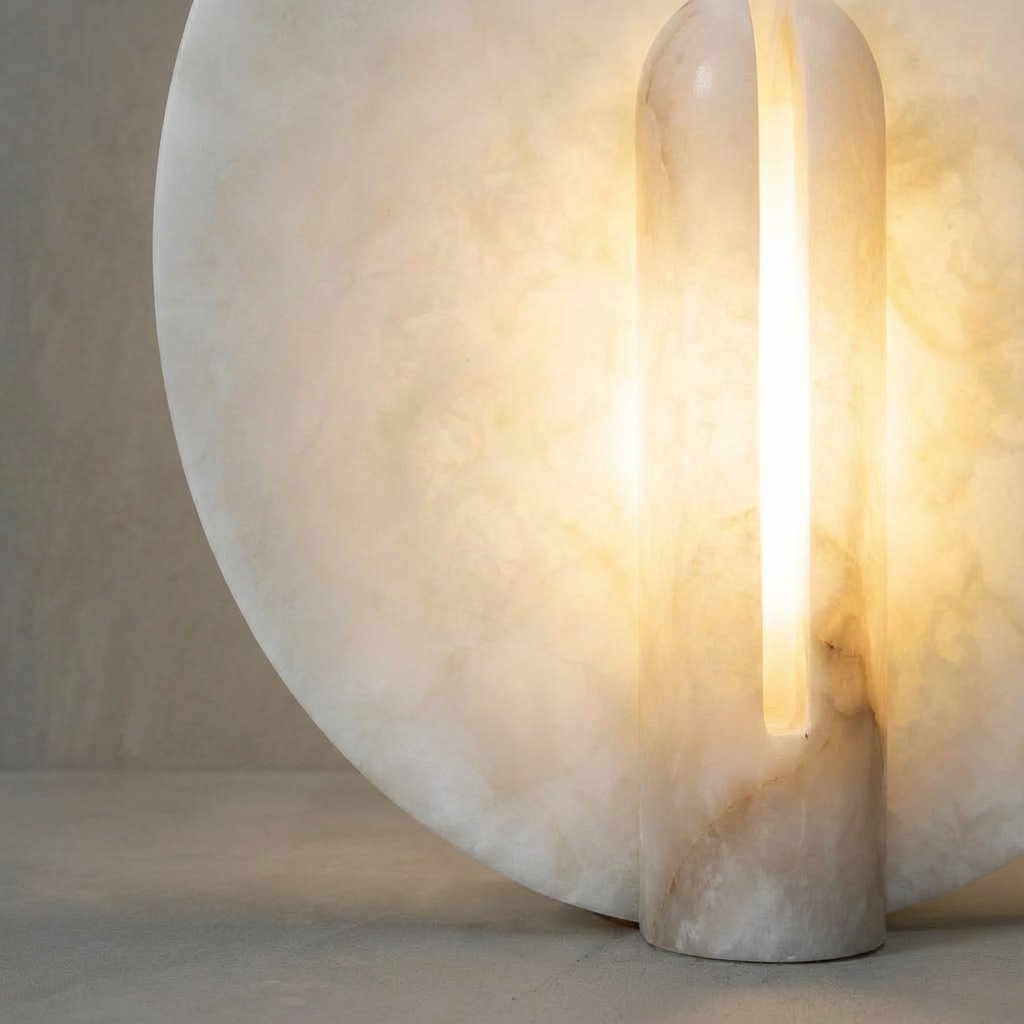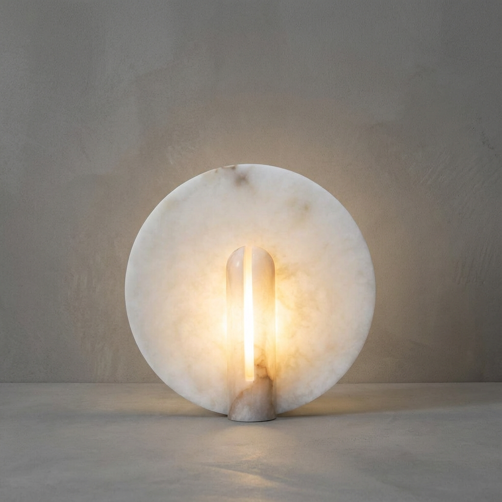 Rounded alabaster contours meet a stable metal base in this refined table lamp, casting a warm, orb-like glow. The smooth alabaster surface softly diffuses light, creating a gentle radiance that feels both modern and timeless. Each alabaster surface reveals its own mineral character and unique veining, bringing subtle depth and organic texture to your space. Ideal for bedroom settings, living rooms, or layered lighting schemes, this lamp lends an intimate ambiance wherever it's placed, adding a quiet sense of elegance to everyday moments.