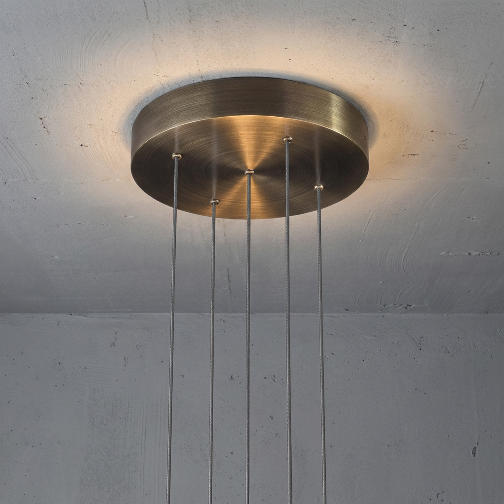 A compact, sculptural pendant that echoes the character of the 18-inch version, this smaller Calli 5 is thoughtfully scaled for more intimate spaces. Its alabaster shade reveals delicate, warm marbling, bringing natural texture and a soft, refined glow to any setting. Casting a focused yet atmospheric pool of light, it's ideal for bedside pairings, cozy breakfast nooks, or staggered in a multi‑pendant installation. The result is a quietly luxurious presence that enriches your space without overwhelming it.