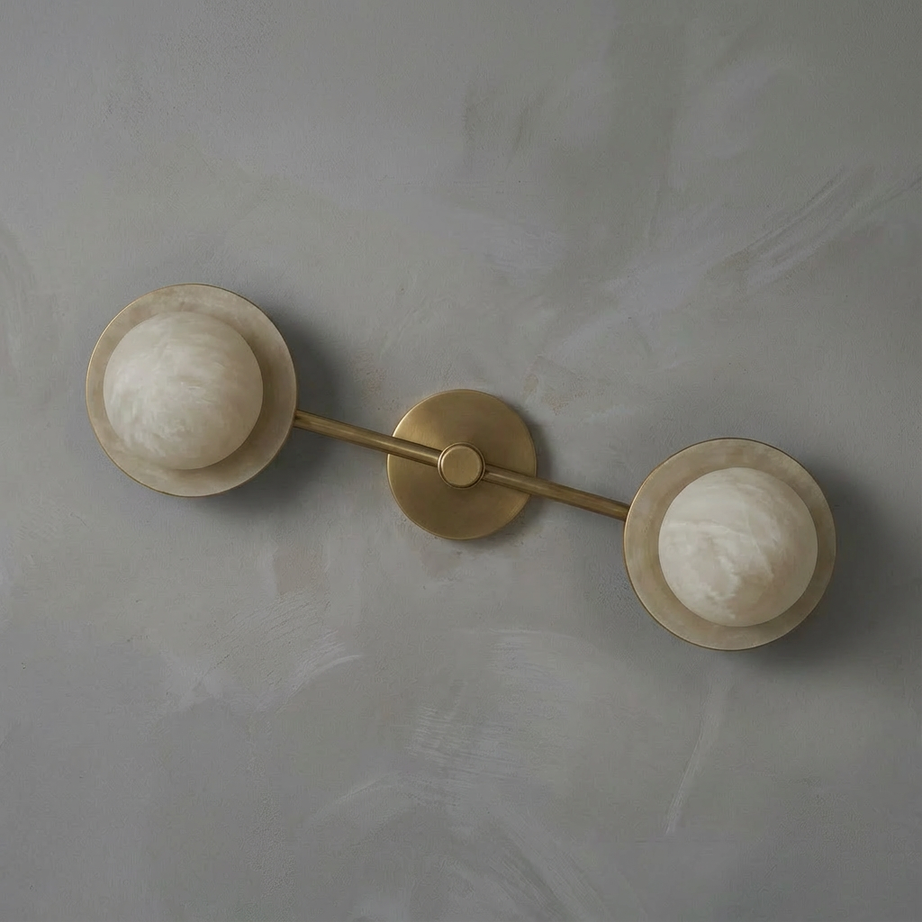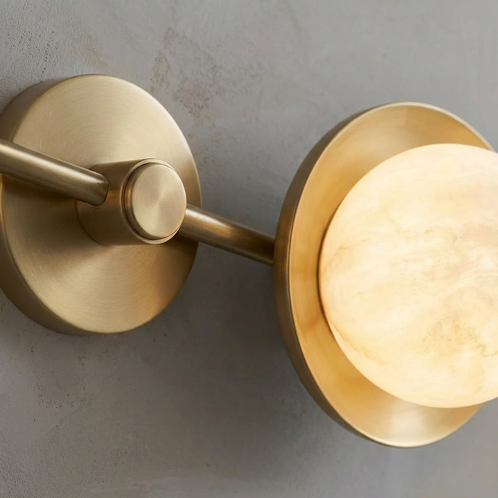 A refined wall light with the same soft contouring as the pendant version, the Cara Wall Light brings a gentle, sculptural presence to any space. The stone shade glows with a warm, even field of light, creating a calm and inviting atmosphere. Discreet metal details keep the look serene and understated, allowing the natural beauty of the stone to take center stage. Ideal for symmetrical bedside placements or for bringing a sense of quiet elegance to hallways, this wall light offers a modern, premium finishing touch.