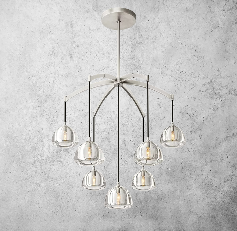 The Cascada Round Chandelier 36" brings a dramatic waterfall effect to the room with tiered fluted crystal glass tubes arranged in a refined drum silhouette. When illuminated, the cascading layers create a glowing canopy of light that feels both sculptural and elegant.