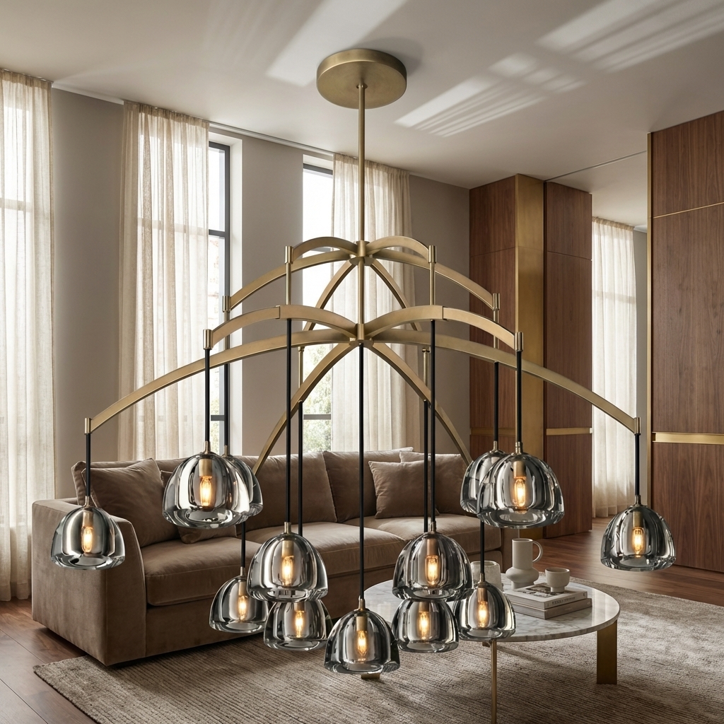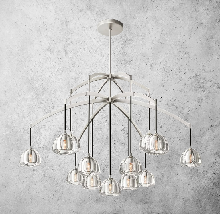 With its generous 60-inch diameter and layered crystal-inspired glass composition, the Cascada Round Chandelier 60'' is designed for spaces that call for scale, elegance, and a memorable lighting presence.