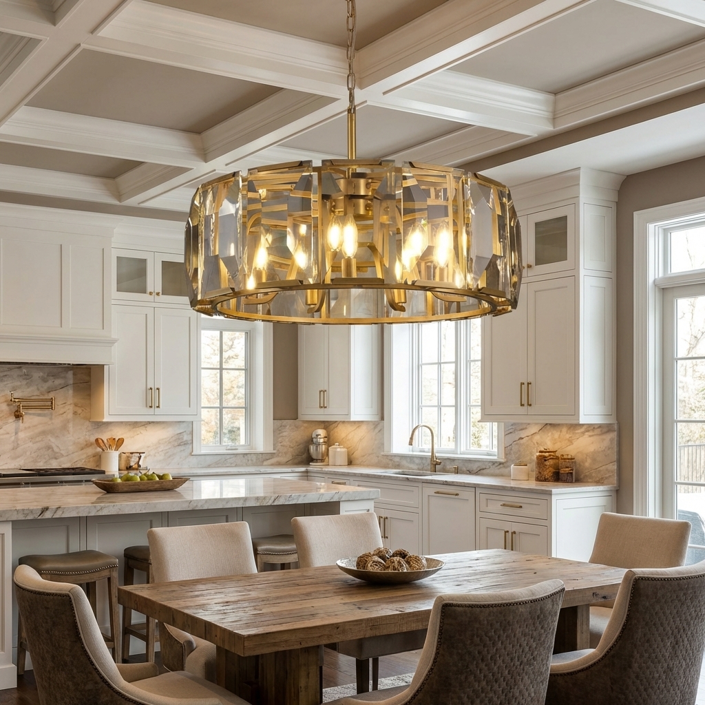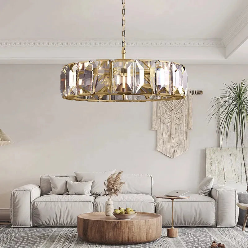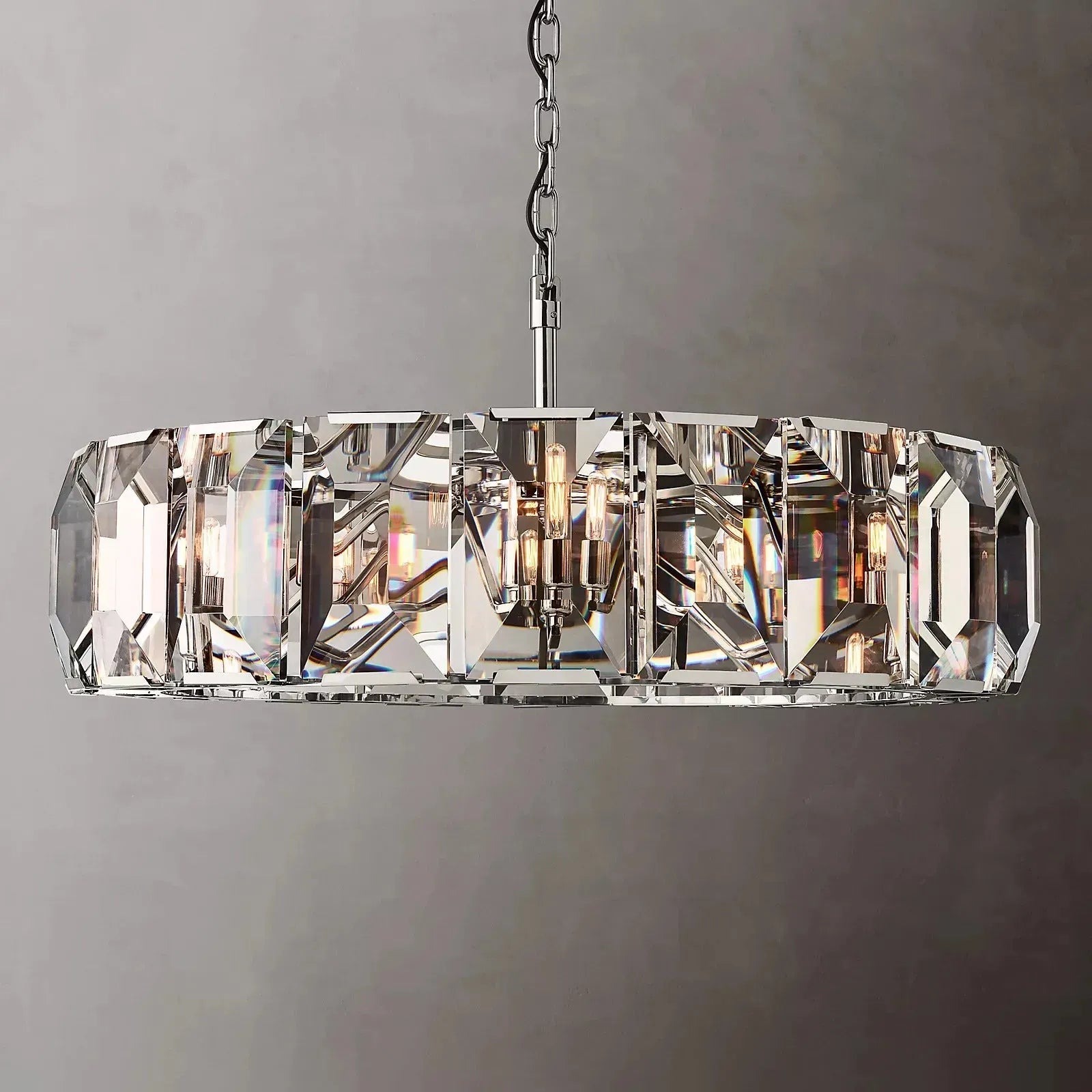 The Cassette Round Chandelier 19" 31" 38" 43" 60"D brings together geometric structure and dazzling crystal refraction, making it an exceptional centerpiece for interiors seeking both vintage glamour and modern architectural impact.