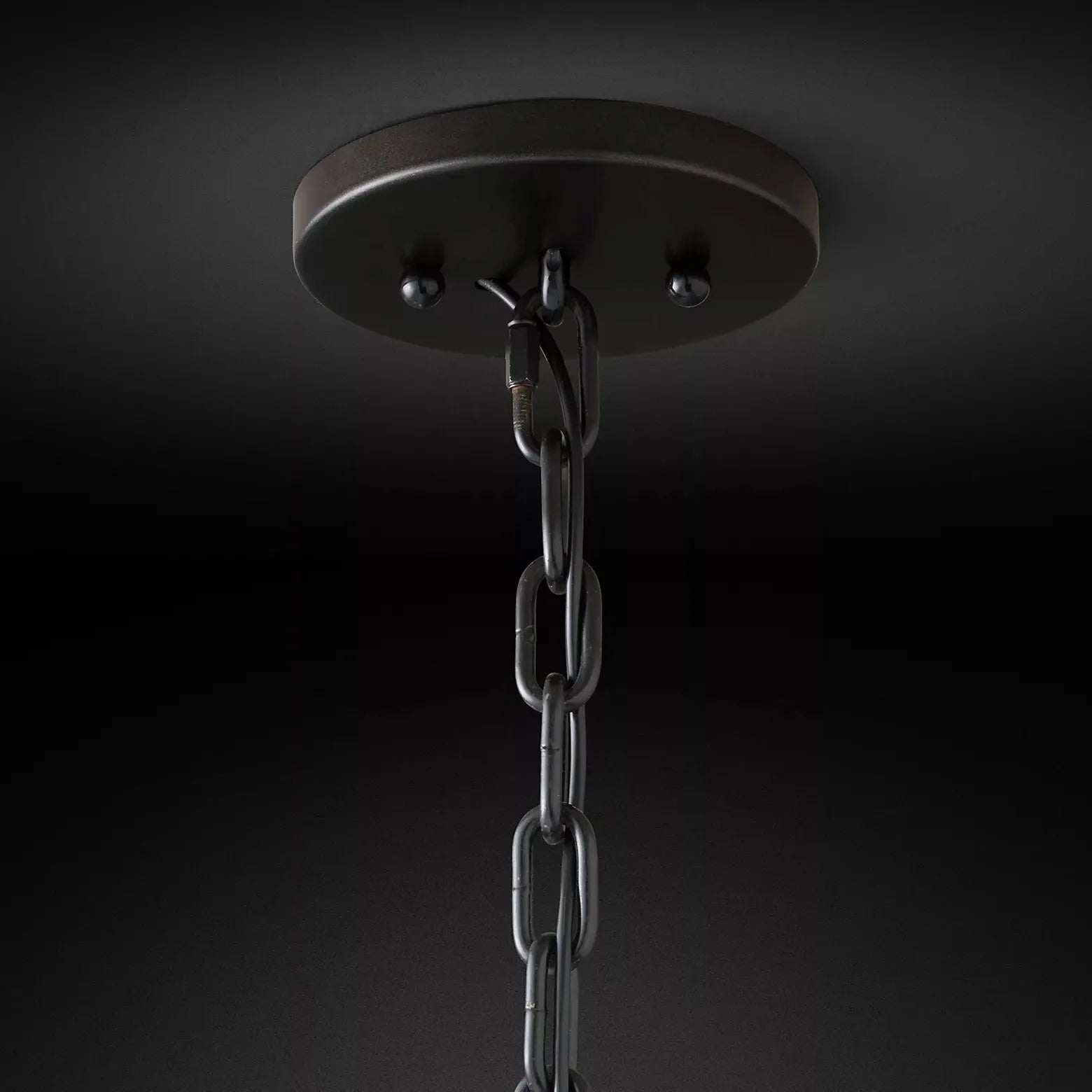 - 38"D size: Chandelier Body: 38½" diam. x 18½"H; Minimum Height: 25"; Maximum Height: 97"; Canopy: 8" diam. x 1"H; Chain: 6'L; Cord: 12'L