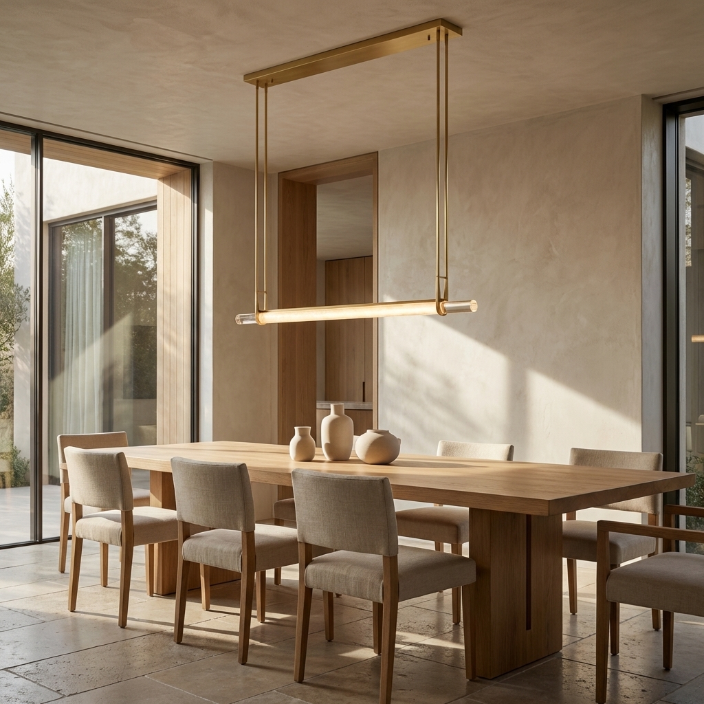 Ideal for interiors seeking a softly luminous focal point, the Colonne Single Bar Linear Chandelier 60" offers a sophisticated balance of structure, warmth, and understated glamour.