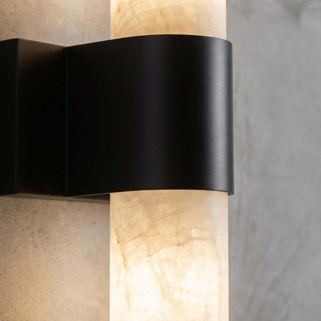 Introducing the Cutar Alabaster Wall Sconce Series, where sculpted form meets the natural beauty of stone. This elegant wall sconce features a gently curved alabaster diffuser that showcases the material's unique veining and subtle translucency. When illuminated, the alabaster emits a steady, warm glow that brings a soft, inviting ambiance to any space. Perfect in pairs along hallways or flanking mirrors in living and dressing areas, the Cutar Alabaster Wall Sconce adds a refined, modern touch while celebrating the timeless appeal of natural alabaster.