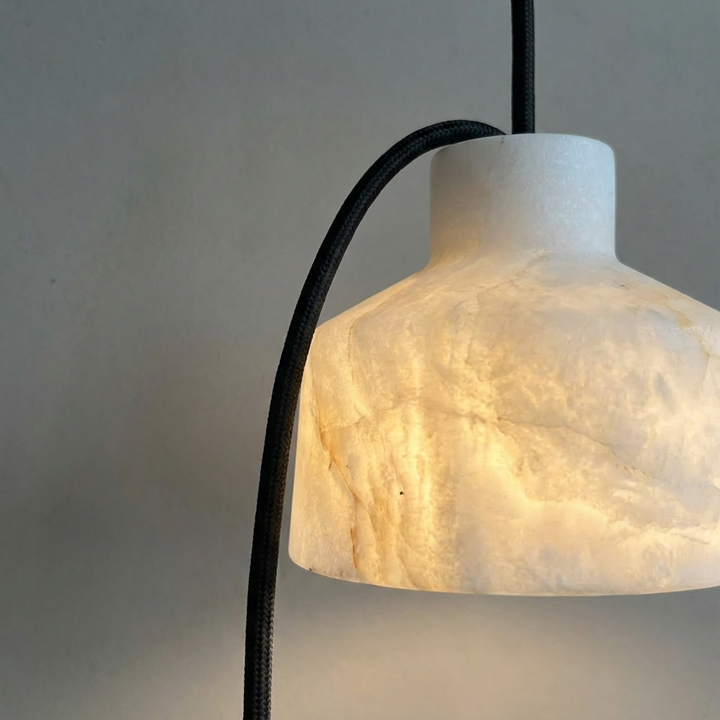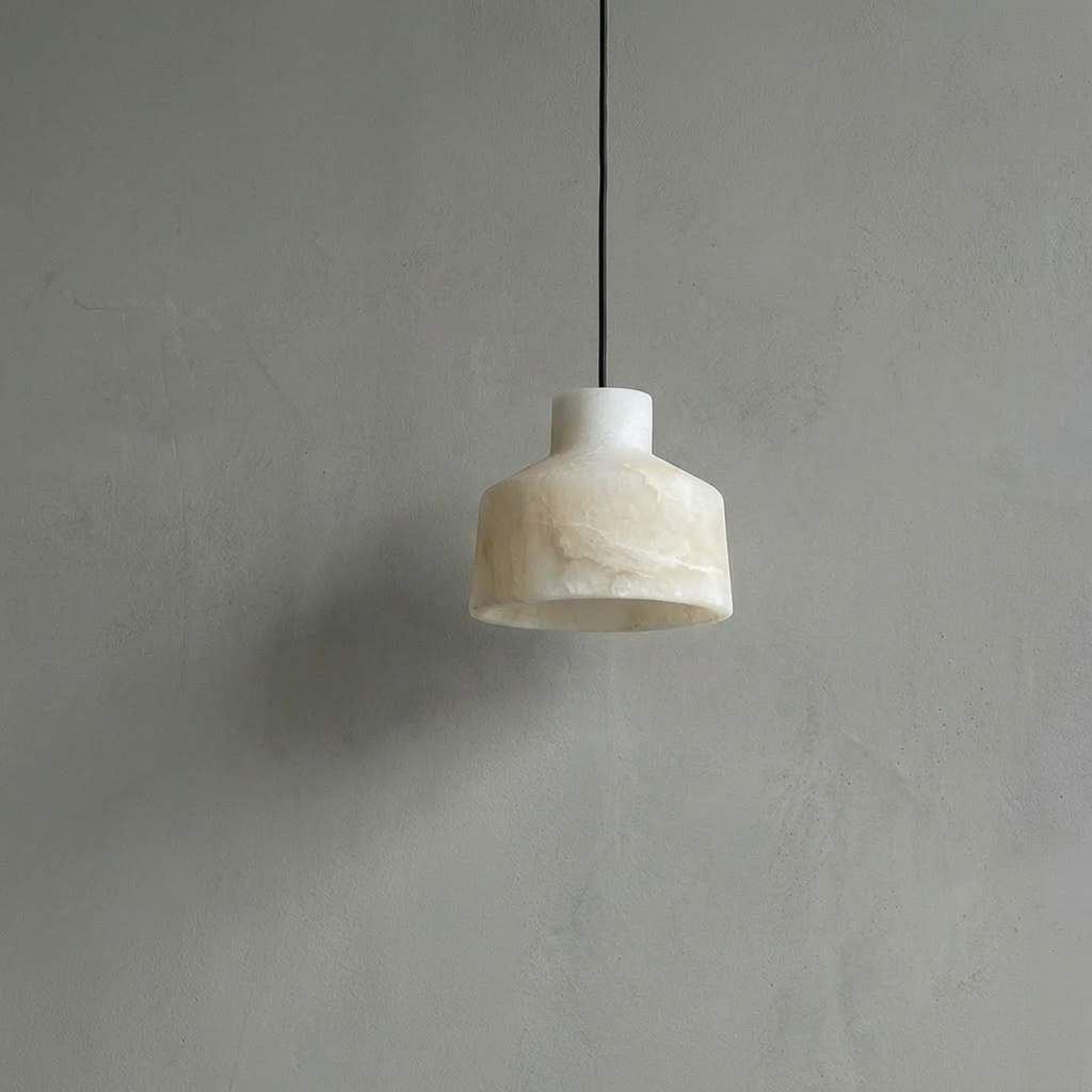 Introducing the Etruscan Alabaster Pendant Lamp - a modern study in sculptural restraint and natural beauty. Crafted in alabaster, its surface features organic, irregular veining and variation, allowing the light to reveal nuances that are unique to each piece of stone. The design keeps the alabaster as the visual anchor, with refined metal elements providing a quiet, architectural structure. When illuminated, the pendant casts a warm, atmospheric glow that enhances subtle natural textures and adds a sense of modern, organic sophistication. Ideal for curated living rooms, refined dining areas, transitional hallways, or elevated hospitality settings, this pendant lamp is designed for interiors where lighting is meant to feel intentional, intimate, and artful.