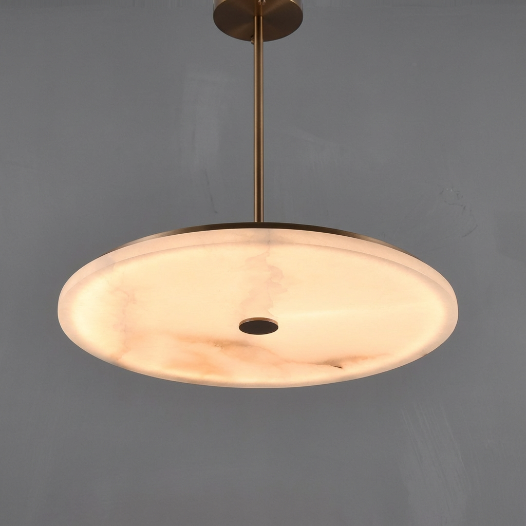 Introducing the Evelina Alabaster Pendant 23 6 Bronze Series - a refined statement piece designed for narrow architectural corridors and thoughtfully composed interiors. Crafted in luminous alabaster, this pendant allows the light to reveal the stone's subtle veining and natural variations, making each installation feel quietly unique. The design emphasizes sculptural restraint, keeping the alabaster as the visual anchor while the bronze metal elements provide a calm, architectural structure. The result is a warm, atmospheric glow paired with understated modern lines and organic texture. Perfect for curated living rooms, refined dining settings, transitional hallways, or elevated hospitality spaces, the Evelina Alabaster Pendant supports interiors where lighting is meant to feel intentional, intimate, and artfully composed.