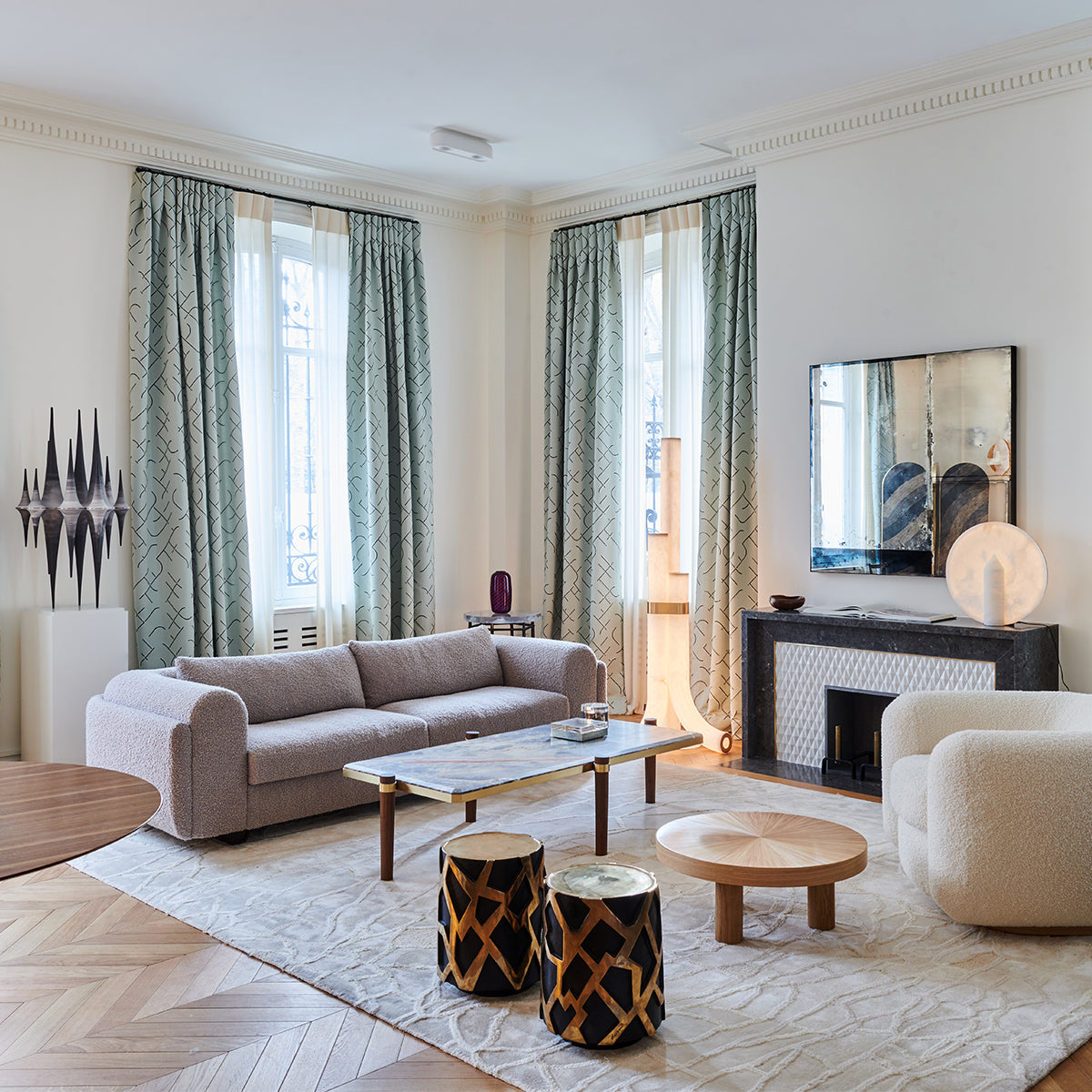 FANTASY is solidly installed on three linear alabaster pieces held at the center by a brass ring. Stretching elegantly towards the sky, FANTASY projects direct light from its extremities. It’s simple, resolutely contemporary design makes it a central piece in the Alabaster Design collection.
