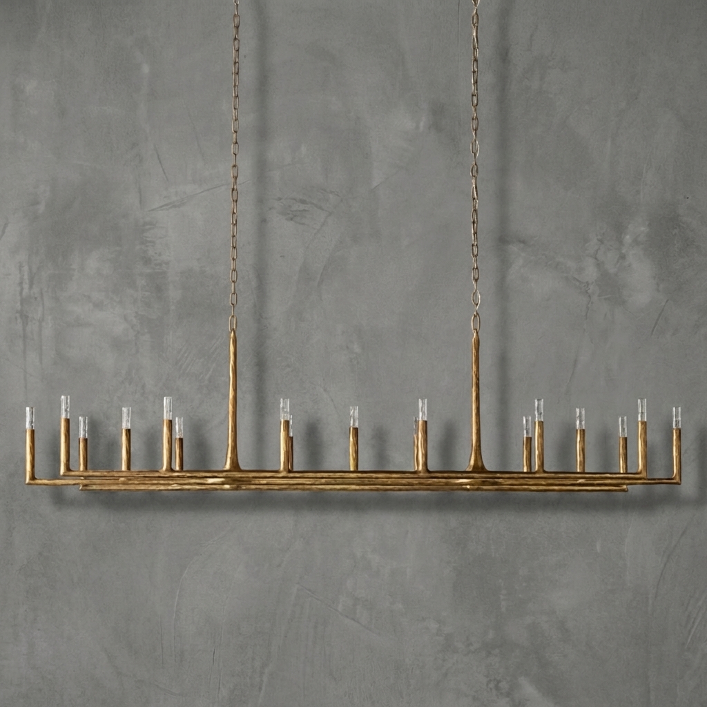 The Forgeron Linear Chandelier 96" is especially well-suited for long dining tables, oversized kitchen islands, restaurants, villas, and upscale hotel interiors. Its generous width and adjustable hanging range allow it to anchor large spaces with sculptural impact.