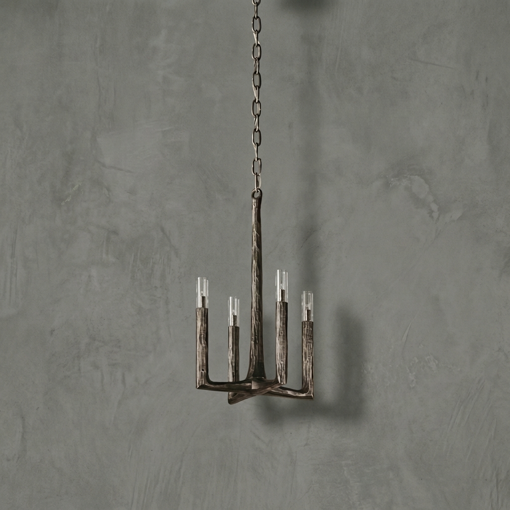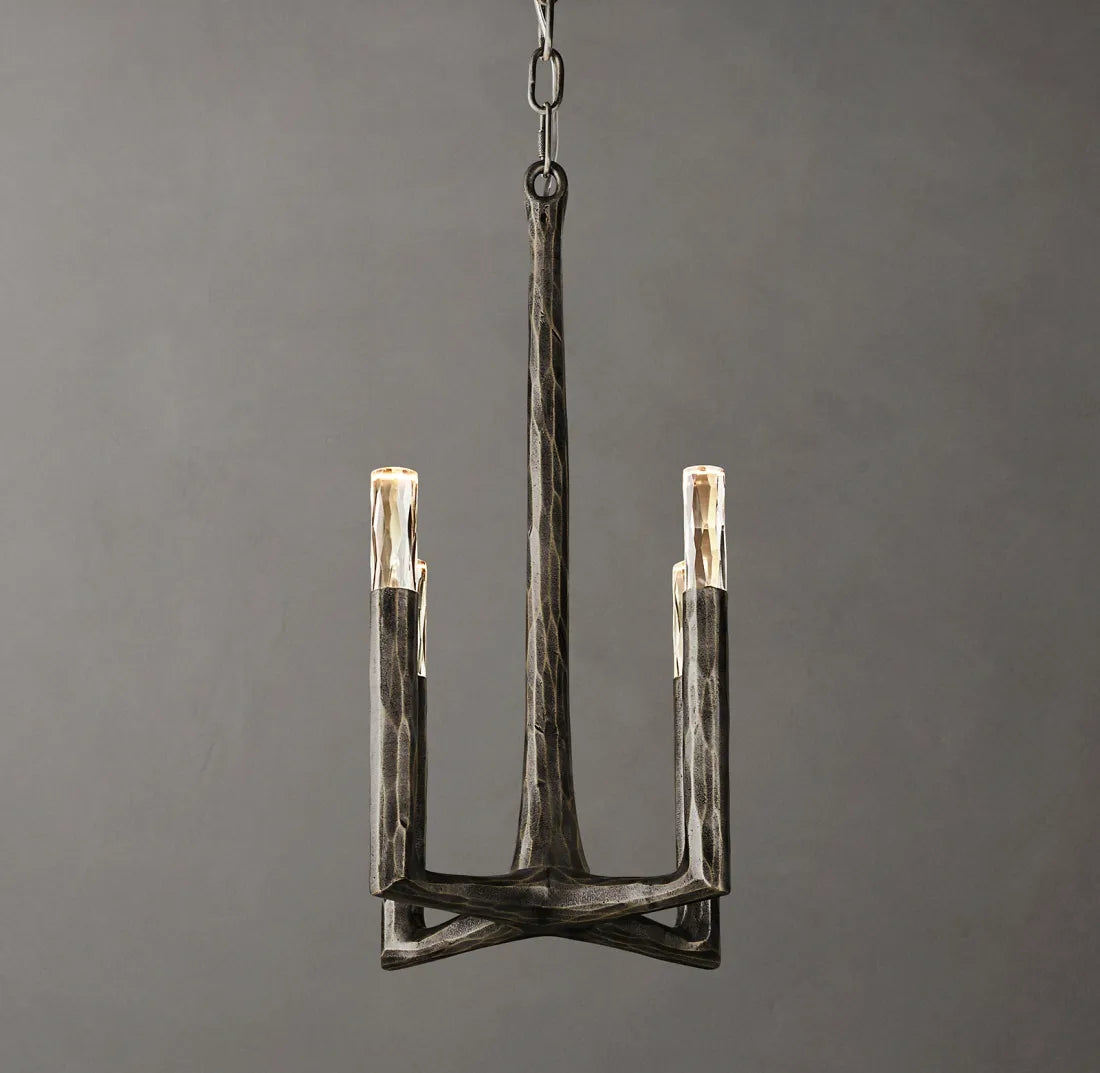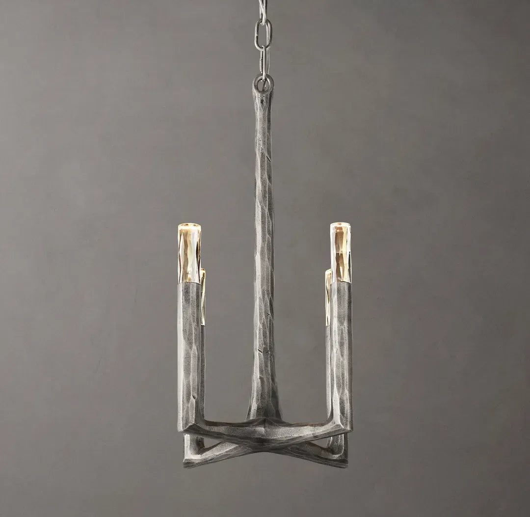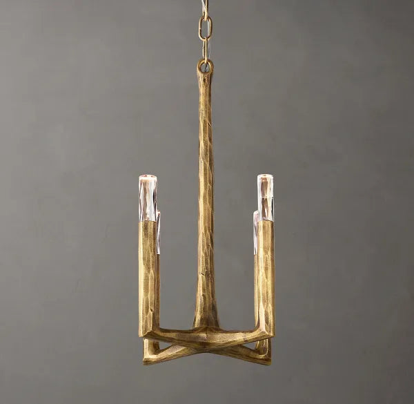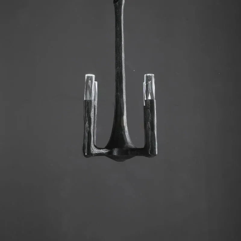 The Forgeron Pendant 12''D is a sculptural statement fixture defined by forged brass spike-like arms and crystal tips, creating an organic, artisanal silhouette with dramatic presence. Crafted from glass and solid brass, this pendant brings raw metalwork and refined sparkle together in one striking design.