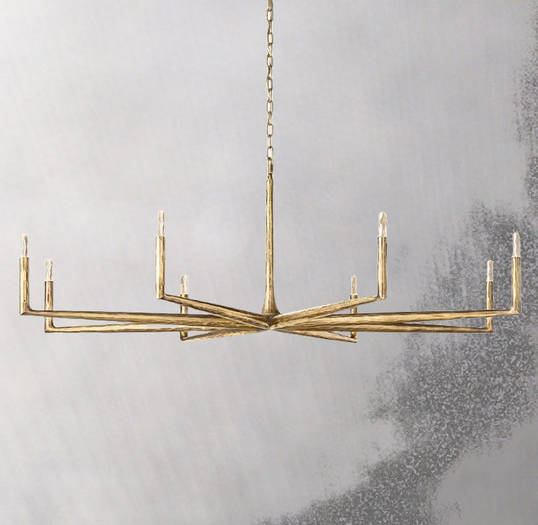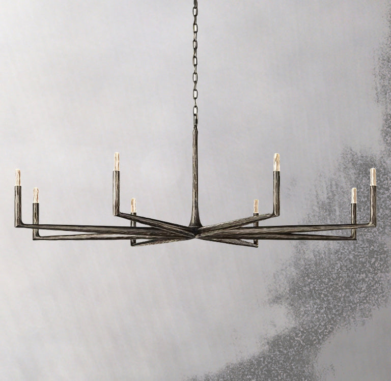 With its expressive forged silhouette and refined crystal accents, the Forgeron Round Chandelier 72" balances rugged craftsmanship with elevated luxury, making it a striking focal point in both residential and hospitality settings.