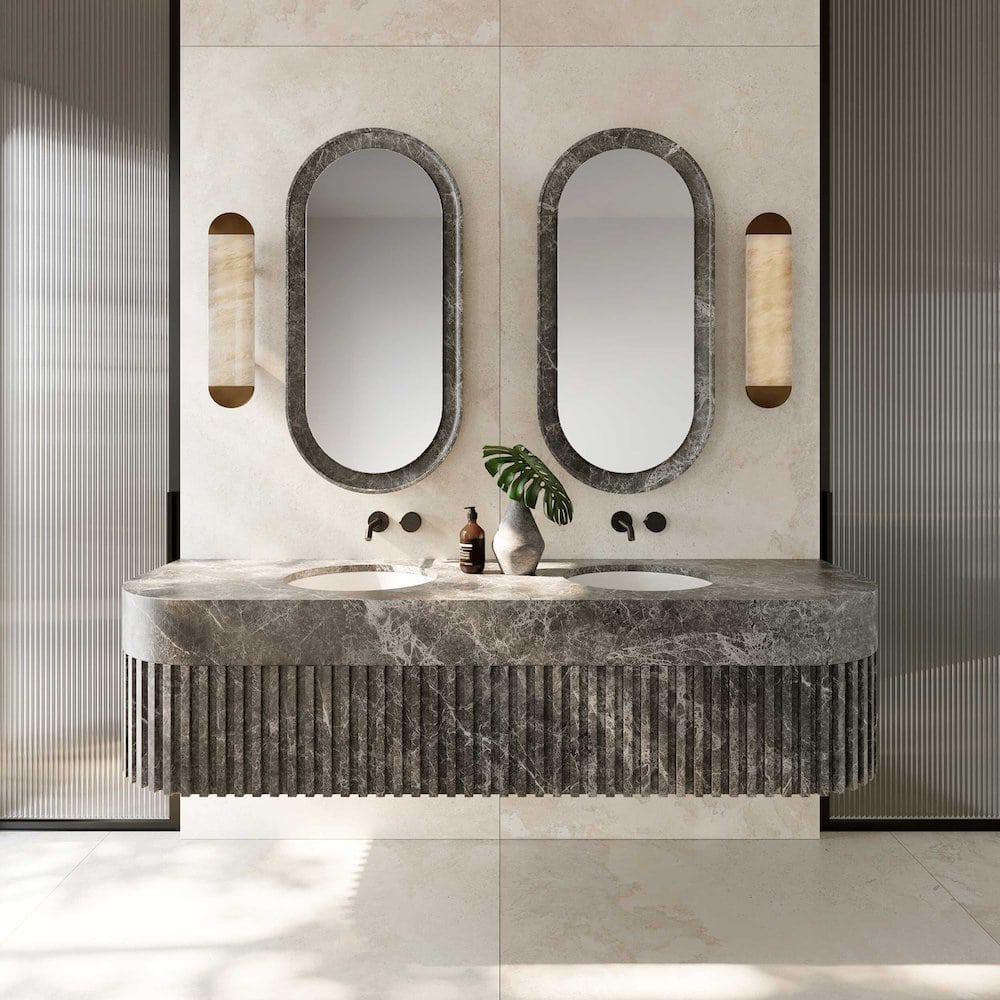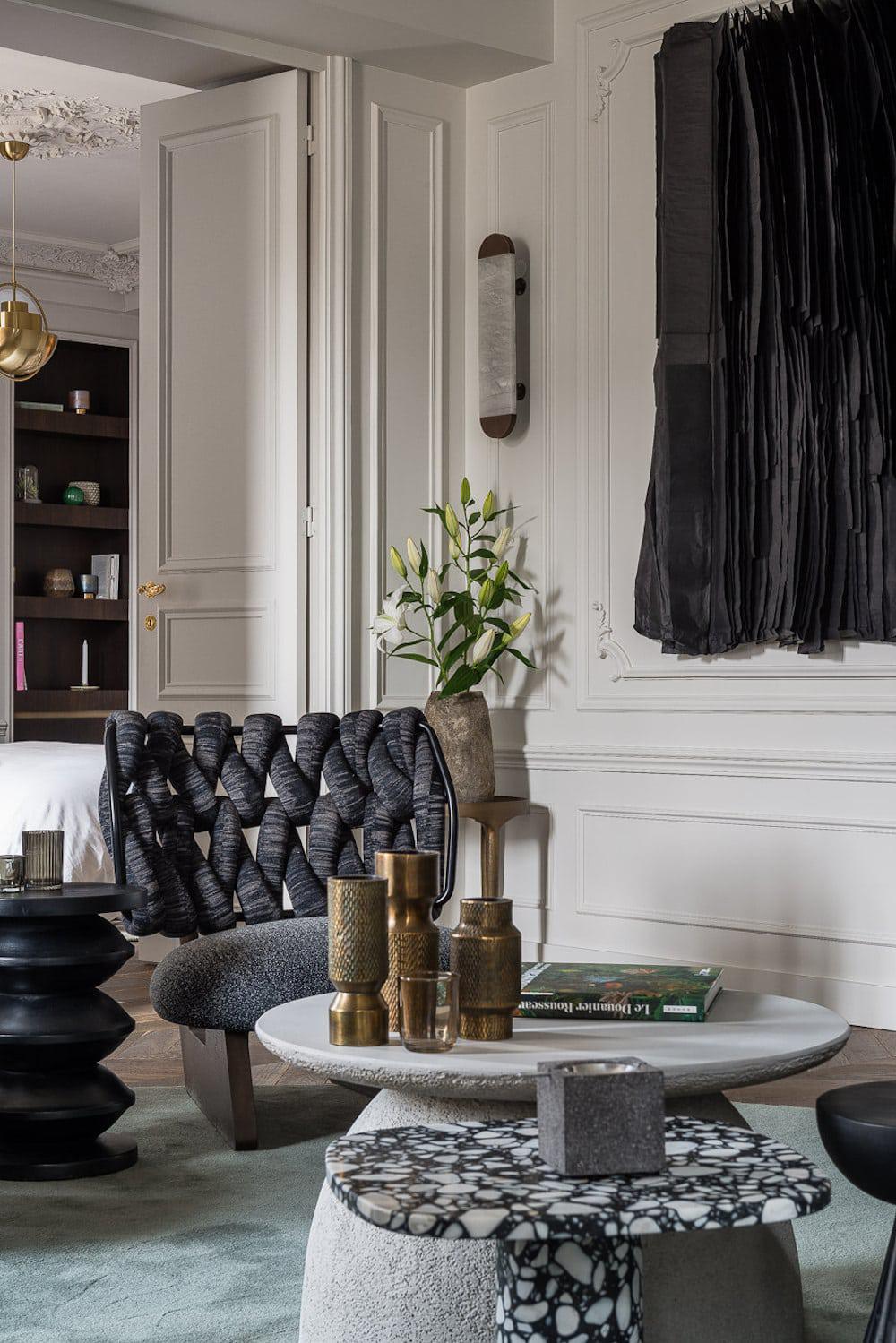 Each piece is made in France and hand crafted in alabaster and unpolished bronze. This timeless, elegant and sober collection is staying true to the materials raw and brutalist character.