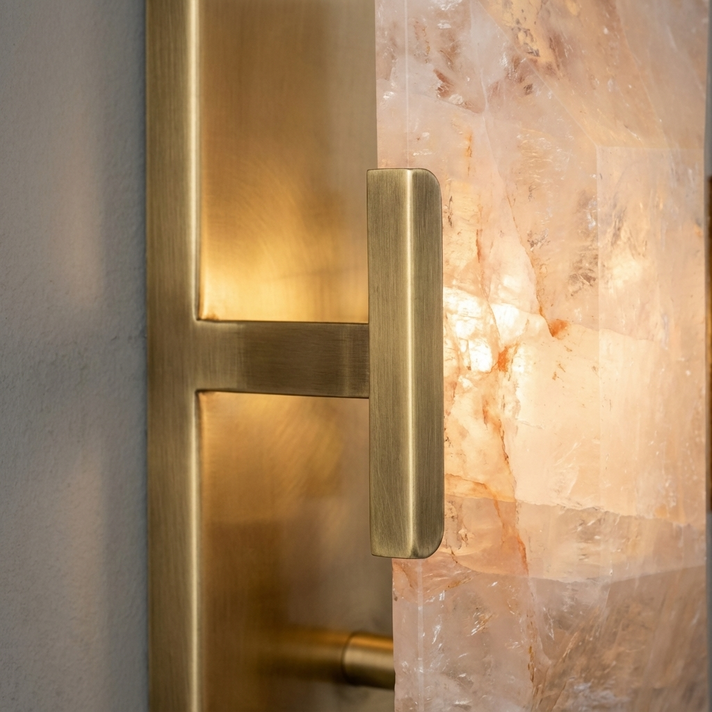 Introducing the Harlow Translucent Modern Calcite Wall Sconce - a sculptural expression of natural stone and quiet luxury. This modern calcite design showcases deep veining and soft diffusion, creating an ambient glow that feels both calm and elevated. Its refined, streamlined profile suits contemporary bathrooms, living rooms, and transitional interiors, bringing a subtle yet distinctive presence to any space. Crafted in alabaster (or calcite), the Harlow sconce emphasizes material authenticity and the beauty of natural variation. The translucent stone surfaces enhance biophilic interiors and pair effortlessly with wood, brass, bronze, concrete, and soft textiles. Its handcrafted diffuser allows the veining to remain visible from multiple angles, making every installation unique, tactile, and connected to nature. With its gentle radiance and soft ambient spread, this sconce works gracefully in modern organic settings, Scandinavian-inspired environments, luxury hospitality spaces, and transitional homes seeking sculptural lighting with emotional warmth. Whether illuminating dining areas, open living rooms, curated hallways, staircases, or boutique commercial interiors, the Harlow Translucent Modern Calcite Wall Sconce adds a sense of refined architectural balance and understated sophistication.