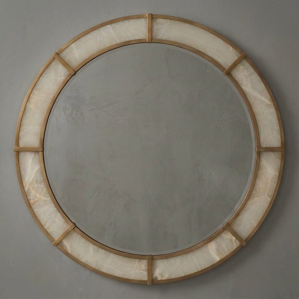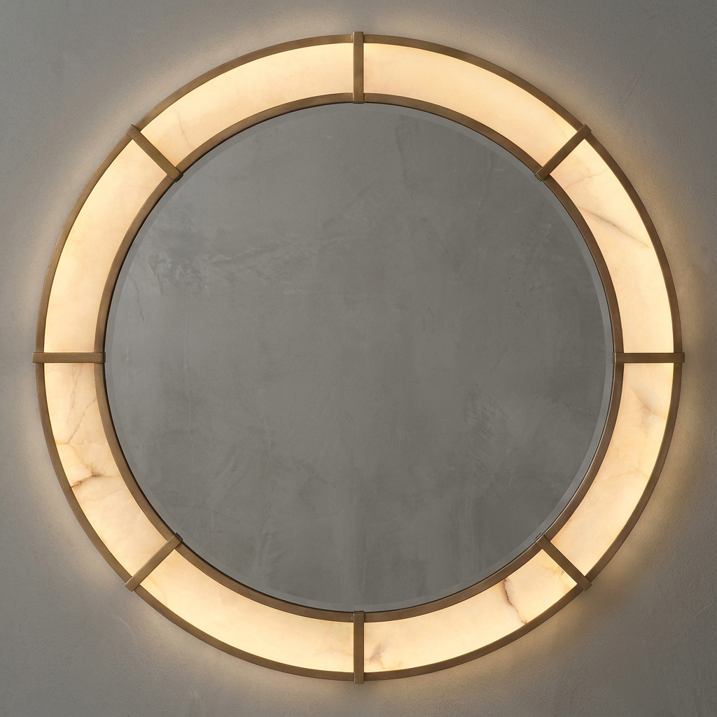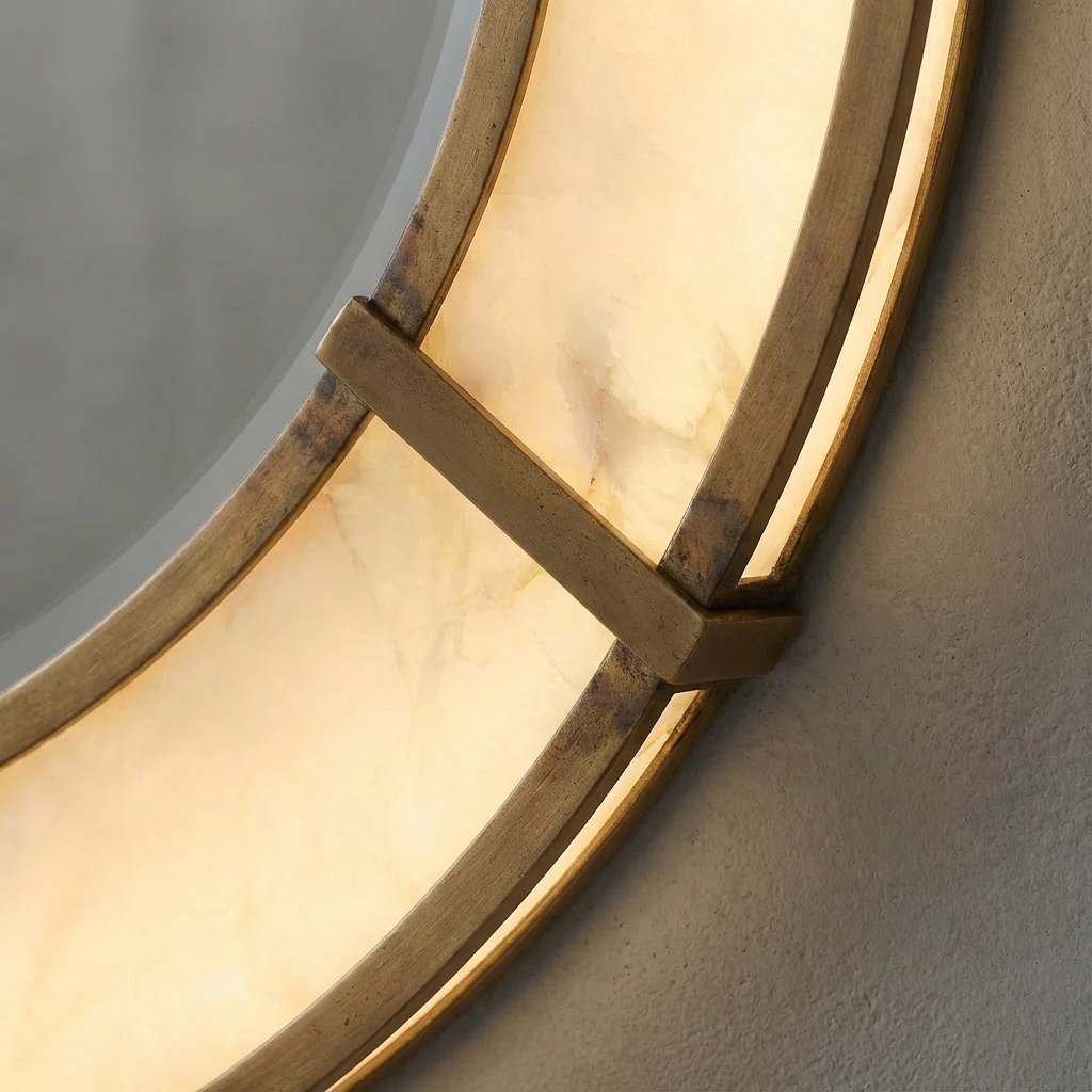 Illuminated Blaire Alabaster Round Mirror - Antiqued Brass