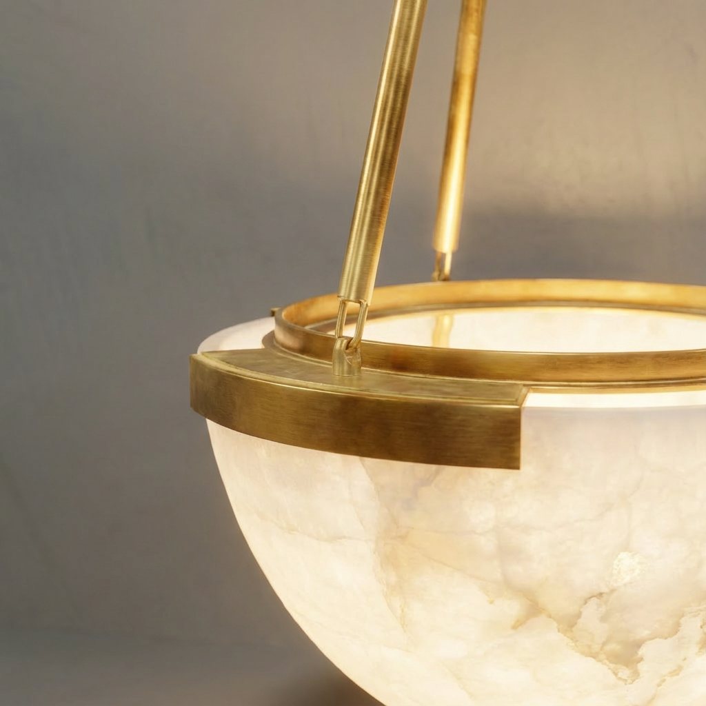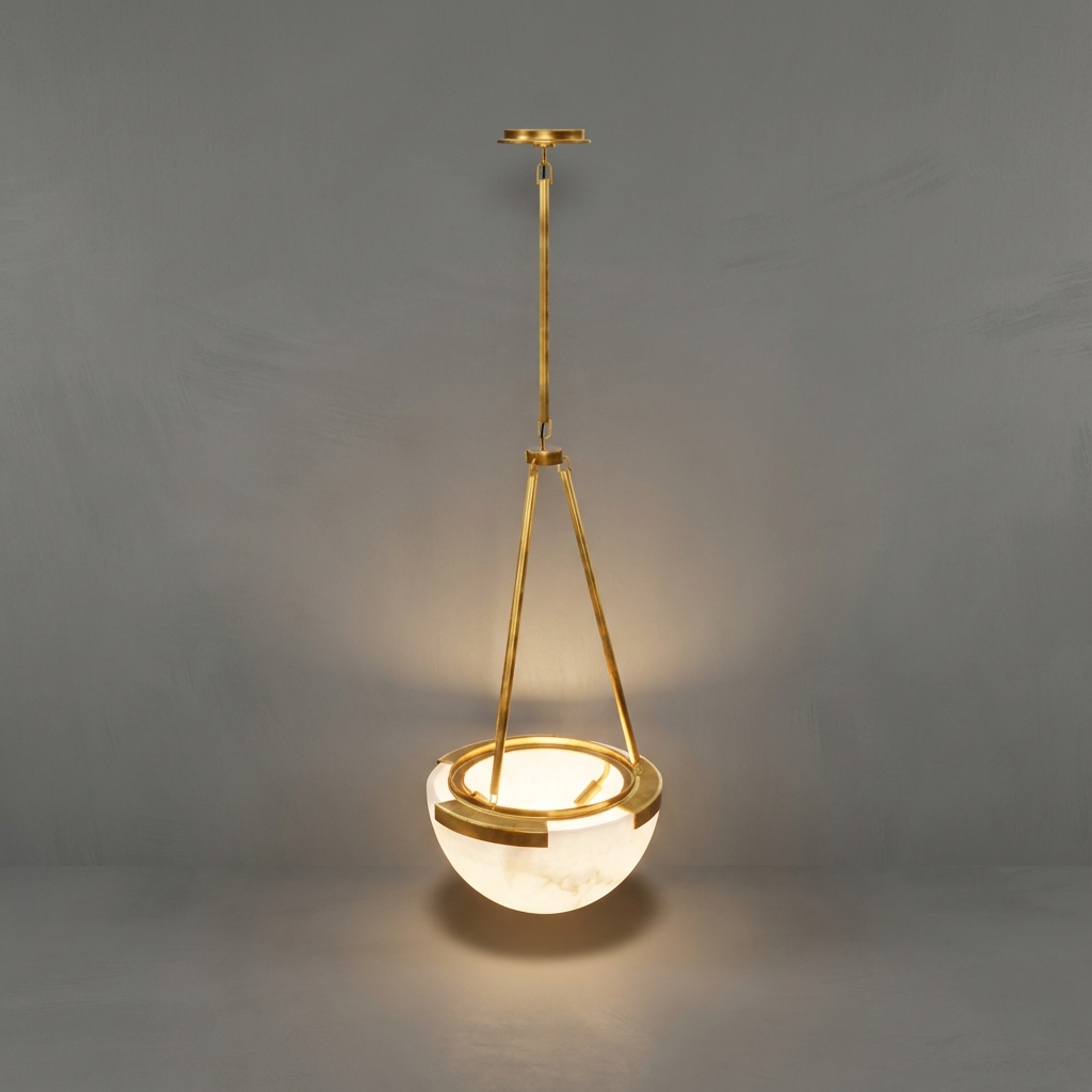 Light drifts across the alabaster surface of the Istar Alabaster Chandelier in soft gradients, revealing mineral landscapes that seem to float just beneath the stone. Each piece of alabaster adds a natural, nuanced character, turning illumination into a quiet visual experience. With a shape that is modest yet confident, this chandelier is ideal for layered lighting schemes that prioritize a gentle glow over direct beams. Its atmospheric presence makes it especially suited to living rooms, meditative corridors, and any space that benefits from warm, inviting softness.