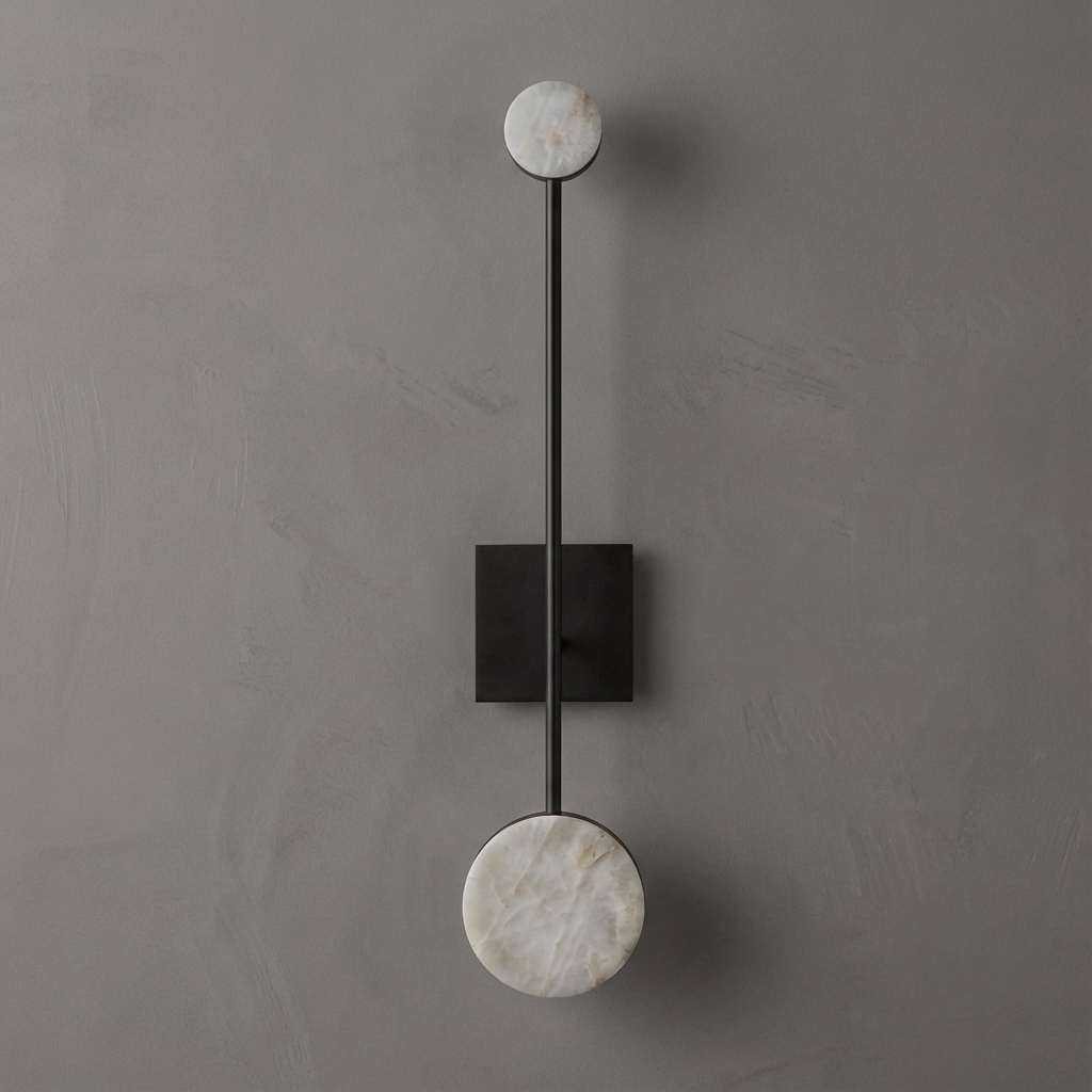 Light settles into alabaster with a muted, atmospheric depth, revealing fine veining and the softly varied surface that makes each piece distinct. In the Longbarrow series, that natural presence is shaped into a tall, composed silhouette whose wider diffuser spreads illumination with calm precision. Bronze detailing introduces a measured architectural note, grounding the stone without distracting from its translucence. The effect is restrained and tactile, with a glow that feels warm, even, and quietly substantial.