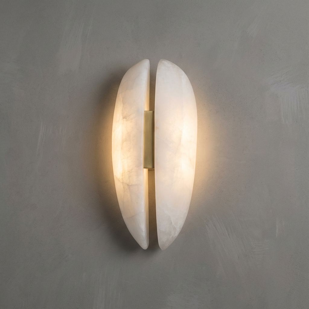 Introducing the Alabaster Luna Wall Lamp Series, where natural stone and soft illumination come together in a quietly captivating way. As the light moves through the alabaster, it awakens with a slow, radiating warmth that deepens and shifts, revealing the subtle nuances within the stone. Each alabaster shade carries its own mineral signature-soft marbling, gentle striations, and translucent patches-so no two pieces are exactly alike. The result is a glow that feels personal and distinctly organic, adding depth and emotion to any space. With its understated, modern form, this wall lamp is designed to complement interiors that celebrate natural materials and sculptural lighting. It brings a sense of calm, tactility, and refined warmth to the wall, enhancing both contemporary and timeless settings with effortless elegance.