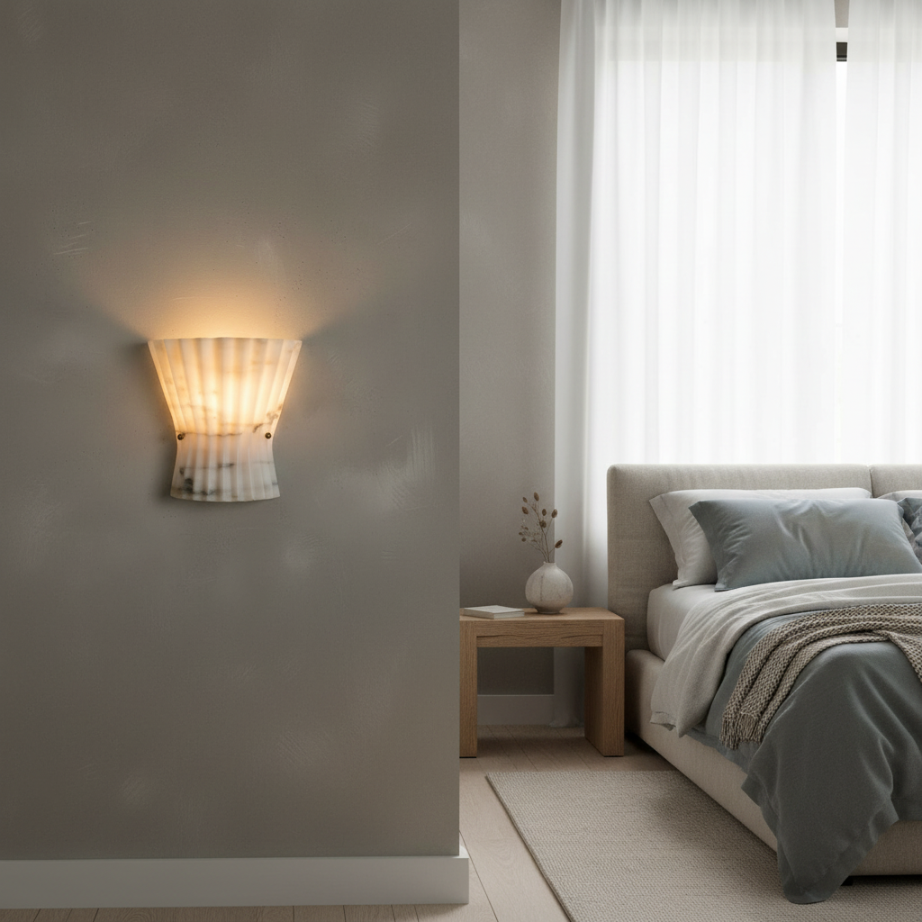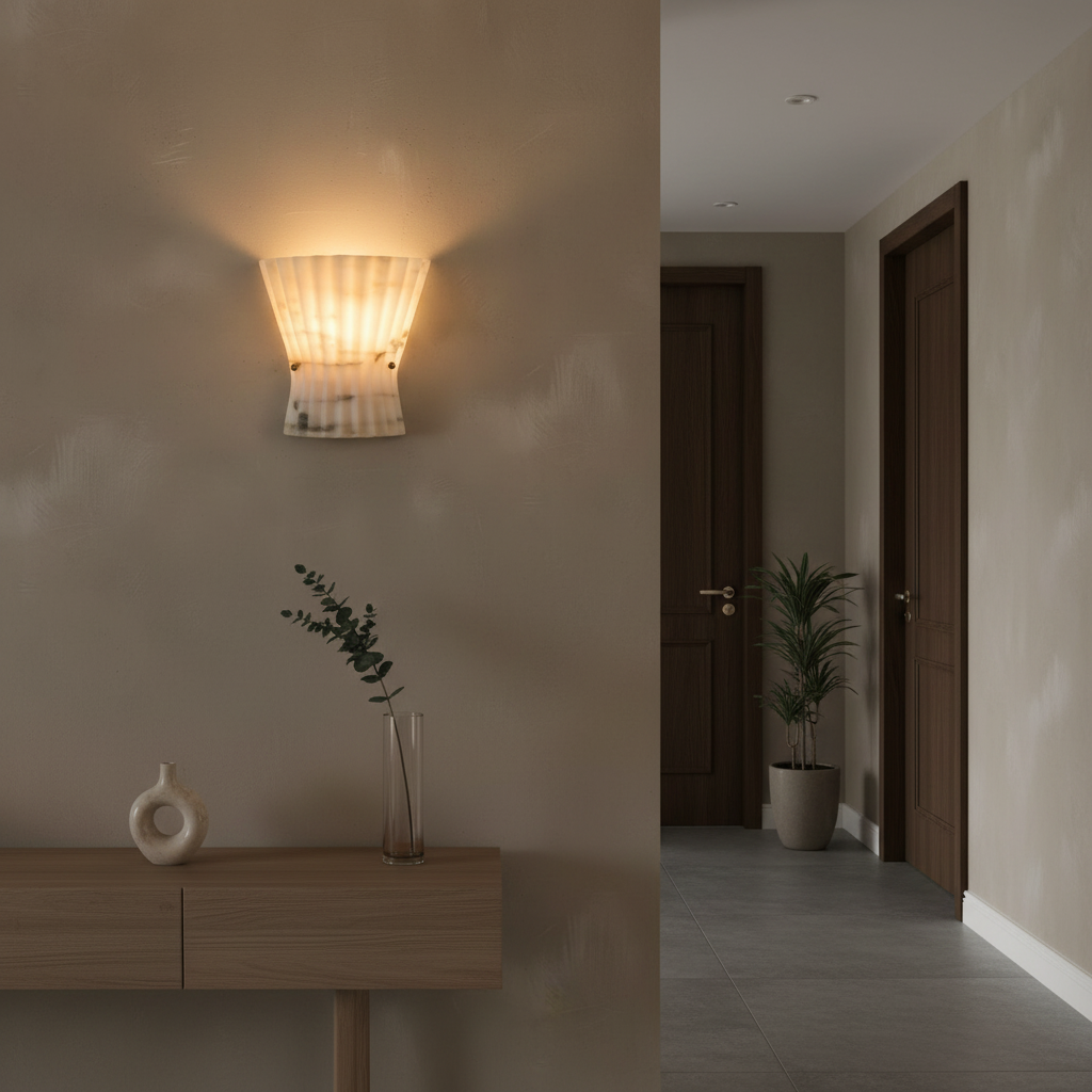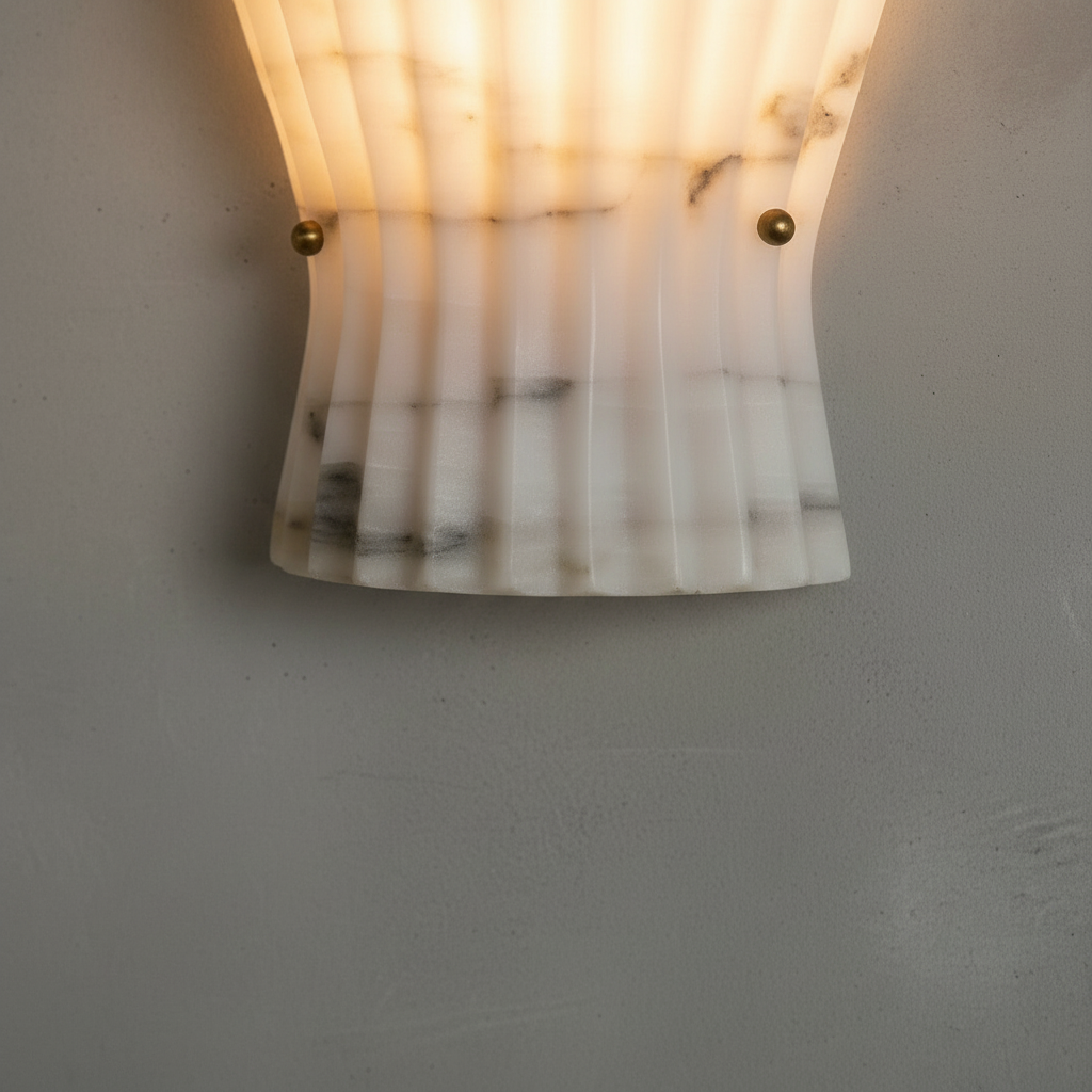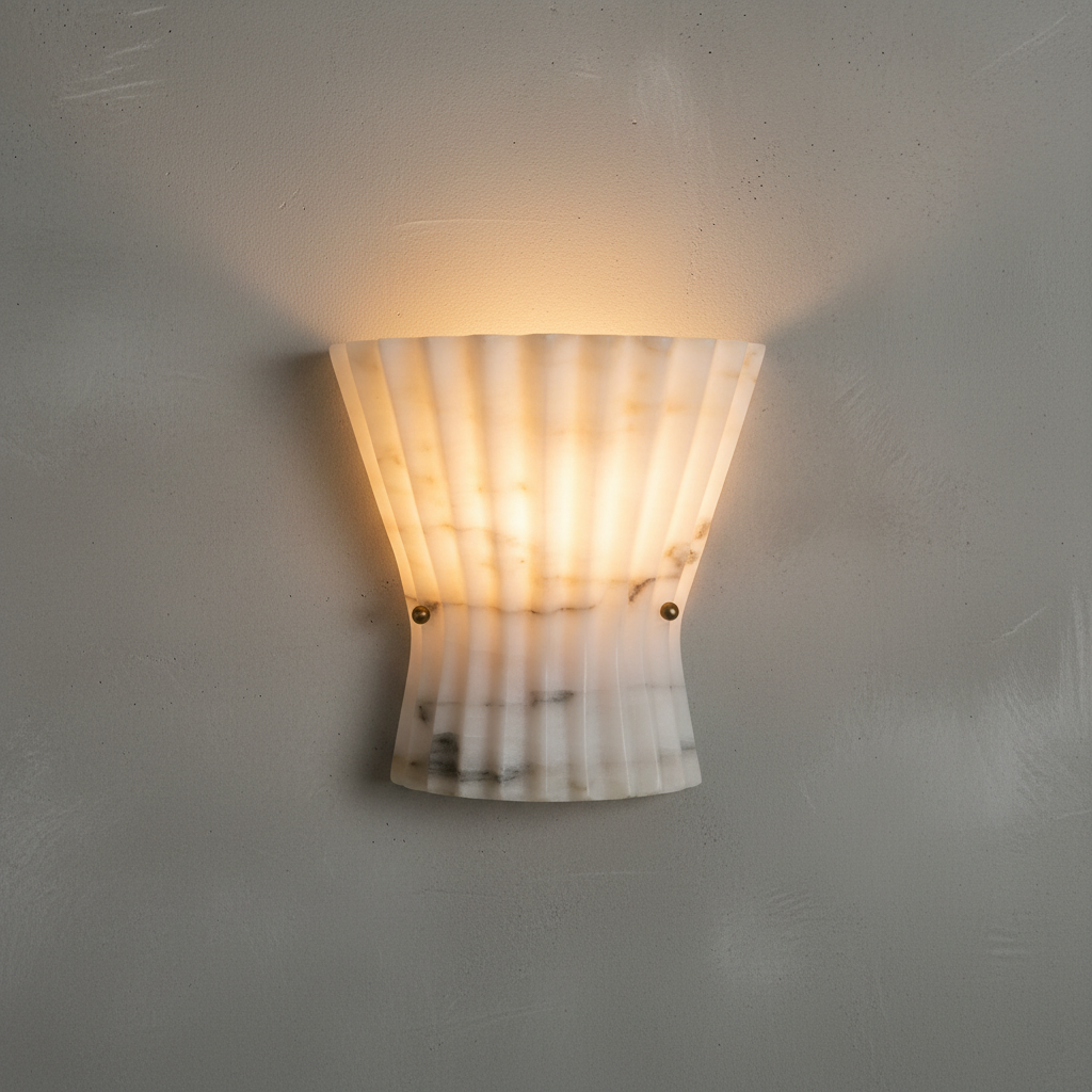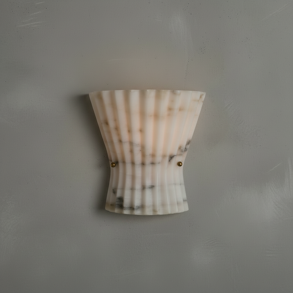 Introducing the Mallory Wall Light Alabaster Series - a refined study in restraint and architectural clarity. Here, alabaster takes the lead as a disciplined structural element, its natural stone presence elevated by a quietly modern silhouette. The alabaster diffuser offers a controlled spread of brightness, revealing clean, understated veining with composure rather than flourish. This creates a sense of calm precision, making the fixture especially at home in dining rooms, transitional corridors, or professional interiors that value order and intention. The interplay between stone and metal is direct yet refined, resulting in a wall light that feels grounded and luxuriously understated. Designed for spaces that favor precision, organization, and high-end material palettes, the Mallory Wall Light Alabaster Series establishes a stable visual rhythm without ever overwhelming the room.
