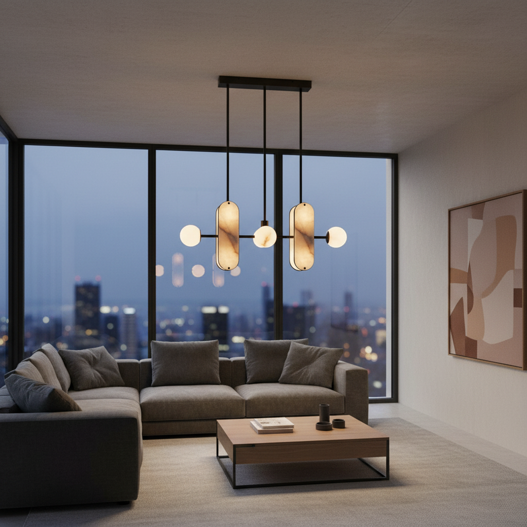 Introducing the Alabaster Megalith Pendant Lamp, where sculptural form meets softly diffused light. The natural alabaster shade opens into a gentle radiance, enriching the room with a warm, emotional glow that feels instantly inviting. Subtle mineral veining reveals itself gradually-never dramatic, always tender-creating a quiet sense of movement within the stone. This understated presence allows the pendant to harmonize beautifully with interiors centered on ease, comfort, and modern elegance. Designed as a refined focal point or a serene accent, the Alabaster Megalith Pendant Lamp brings depth, warmth, and a timeless, premium character to any space.