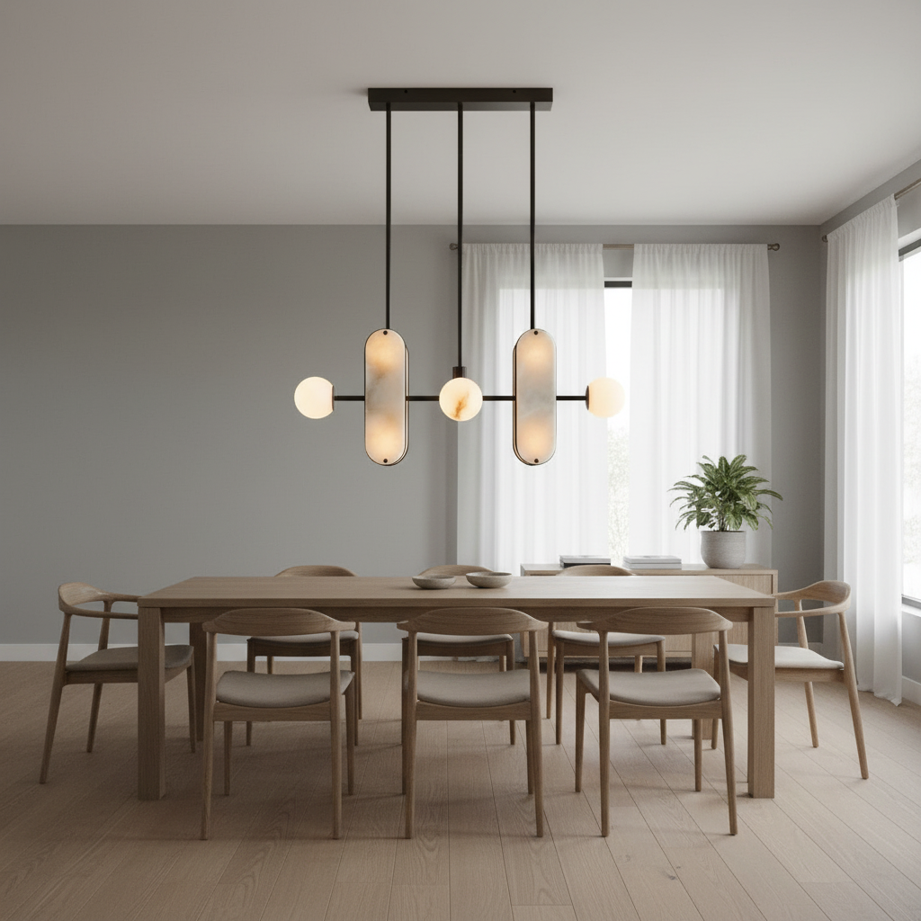 The Alabaster Megalith Pendant Lamp is where sculptural form meets softly diffused light. The natural alabaster shade opens into a gentle radiance, enriching the room with a warm, emotional glow that feels instantly inviting. Subtle mineral veining reveals itself gradually—never dramatic, always tender—creating a quiet sense of movement within the stone. This understated presence allows the pendant to harmonize beautifully with interiors centered on ease, comfort, and modern elegance. Designed as a refined focal point or a serene accent, the Alabaster Megalith Pendant Lamp brings depth, warmth, and a timeless, premium character to any space.