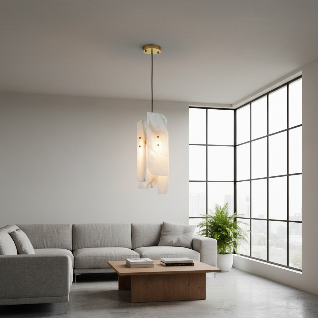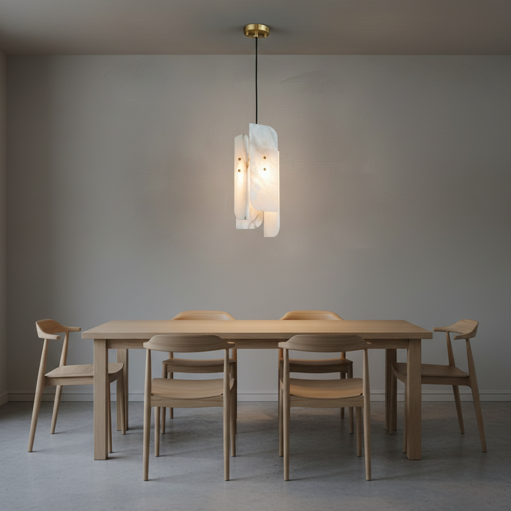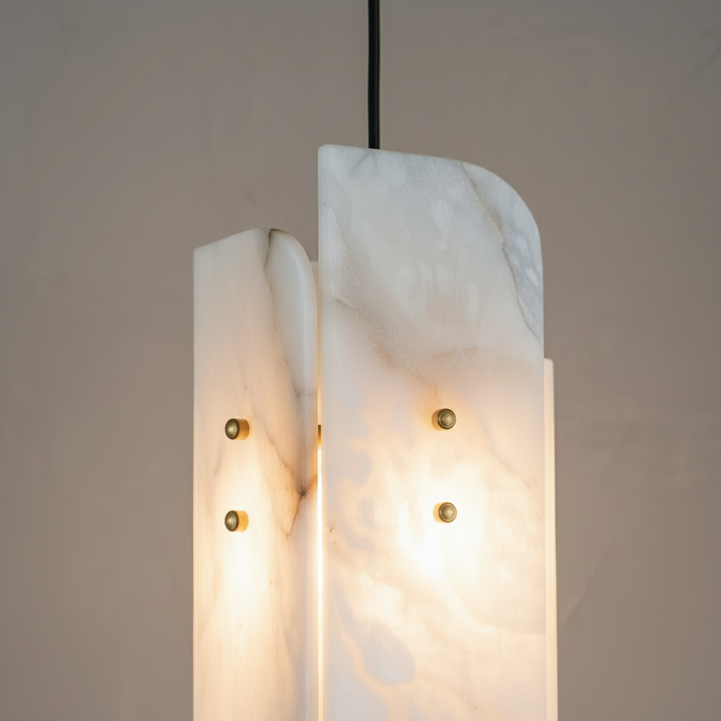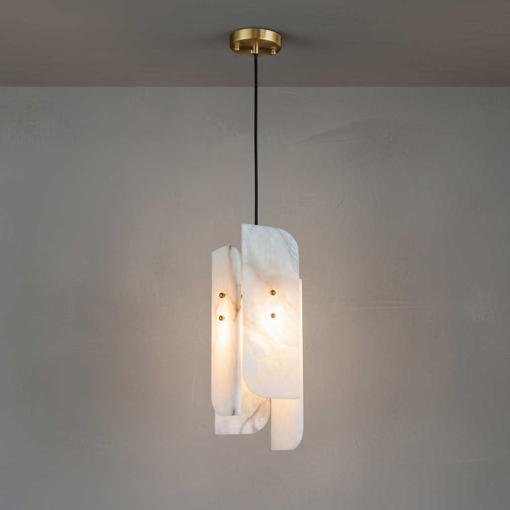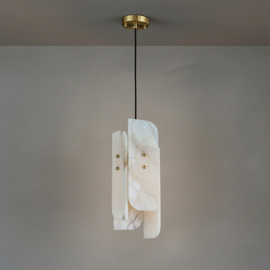 Introducing the Megalith Mini Alabaster Pendant Light Series, where alabaster is elevated into a disciplined architectural element. The natural stone diffuser reveals a controlled, even spread of brightness, showcasing its clean veining with composure rather than flourish. With a silhouette that is intentional and quietly modern, this mini pendant brings a sense of order and refinement to dining rooms, transitional corridors, and professional interiors. The interplay between solid alabaster and metal is direct yet understated, resulting in a fixture that feels both grounded and luxurious. Designed for spaces that favor precision, organization, and high-end material palettes, the Megalith Mini Alabaster Pendant Light offers a stable visual rhythm and a warm, atmospheric glow.